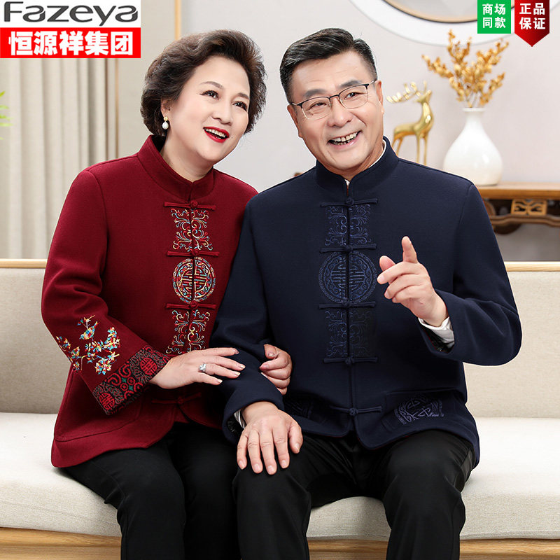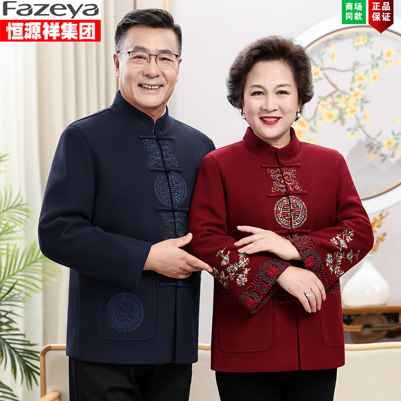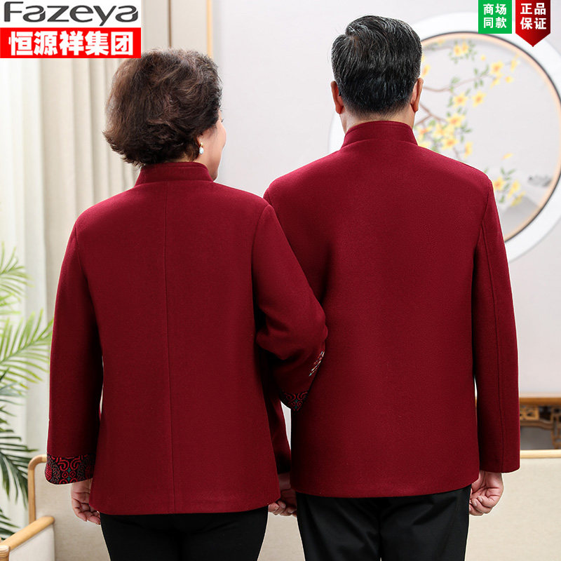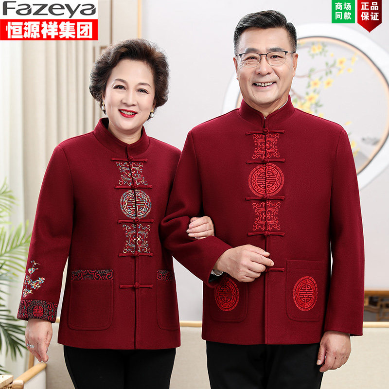 新中式男爸爸毛呢唐装外套中老年秋冬季爷爷奶奶过寿婚礼喜庆衣服