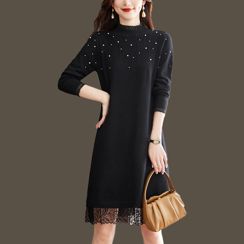 鄂尔多斯市秋冬装新款女毛衣连衣裙韩版套头中长款羊毛打底针织裙