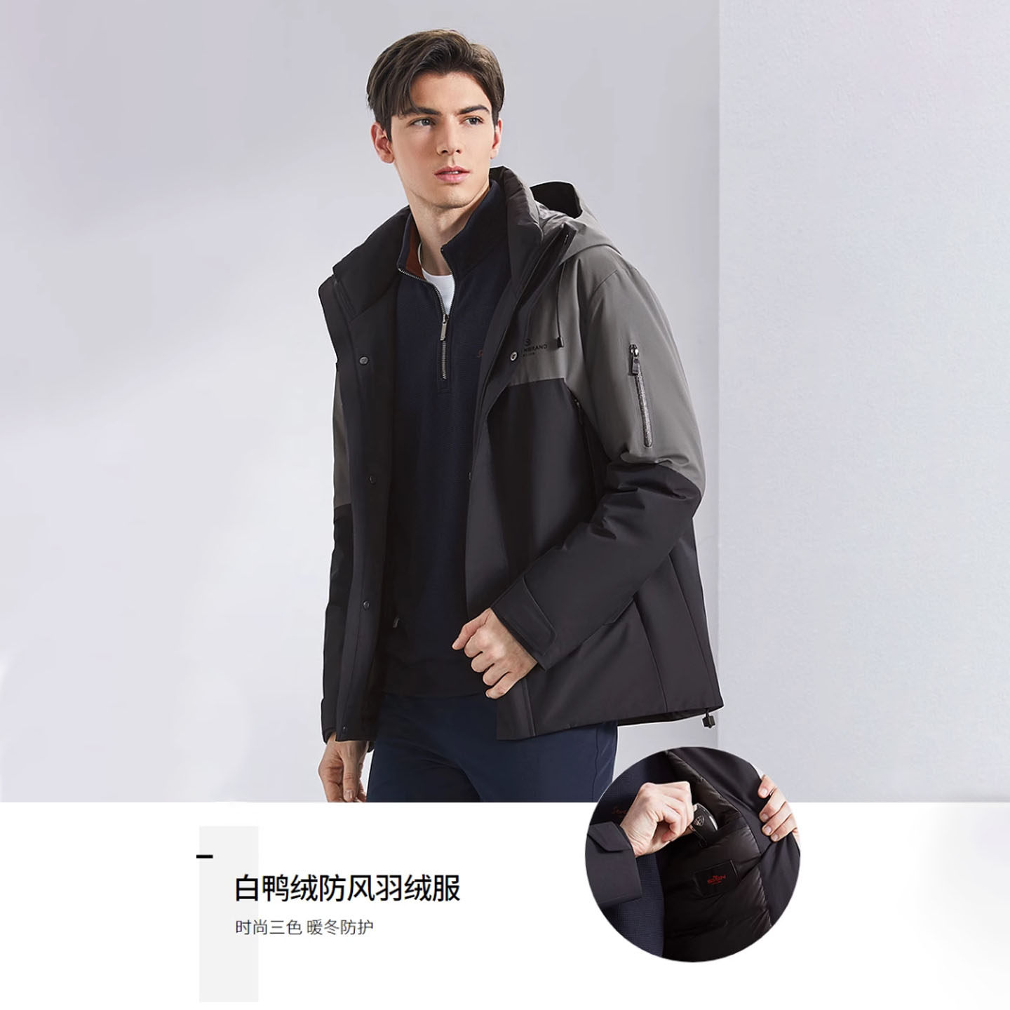 柒牌羽绒服男连帽冬季新款