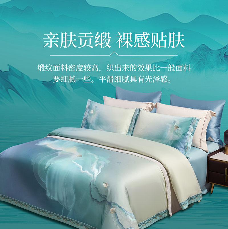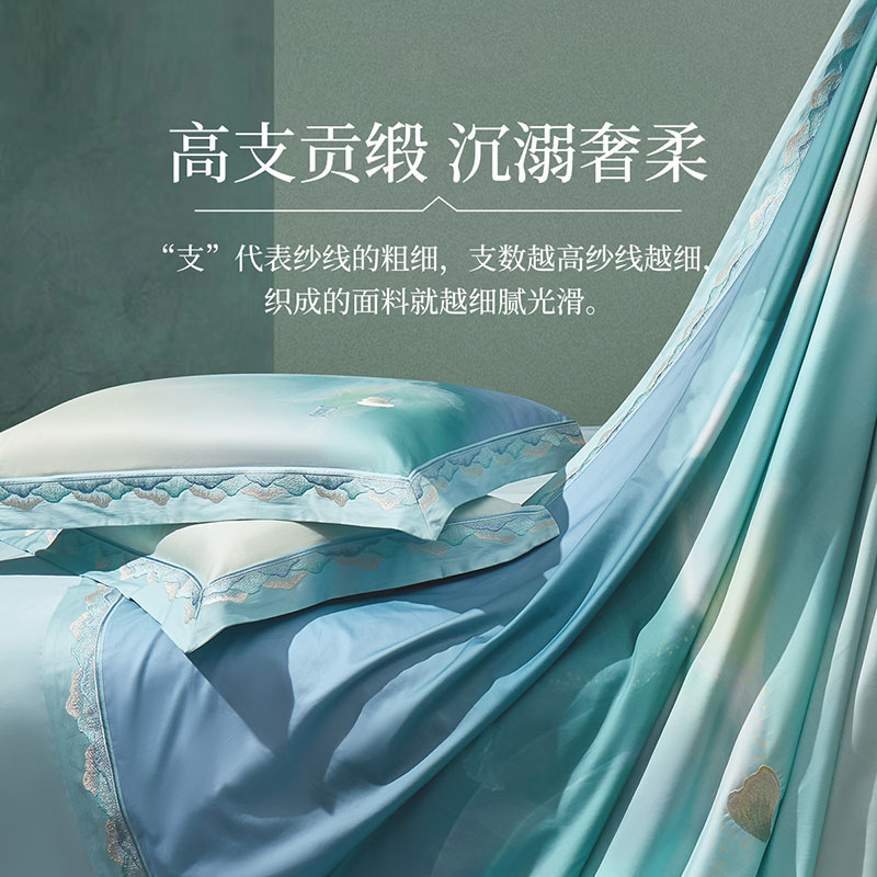 富丽真金100支国风轻奢长绒棉刺绣四件套全棉纯棉高端床上用品棠