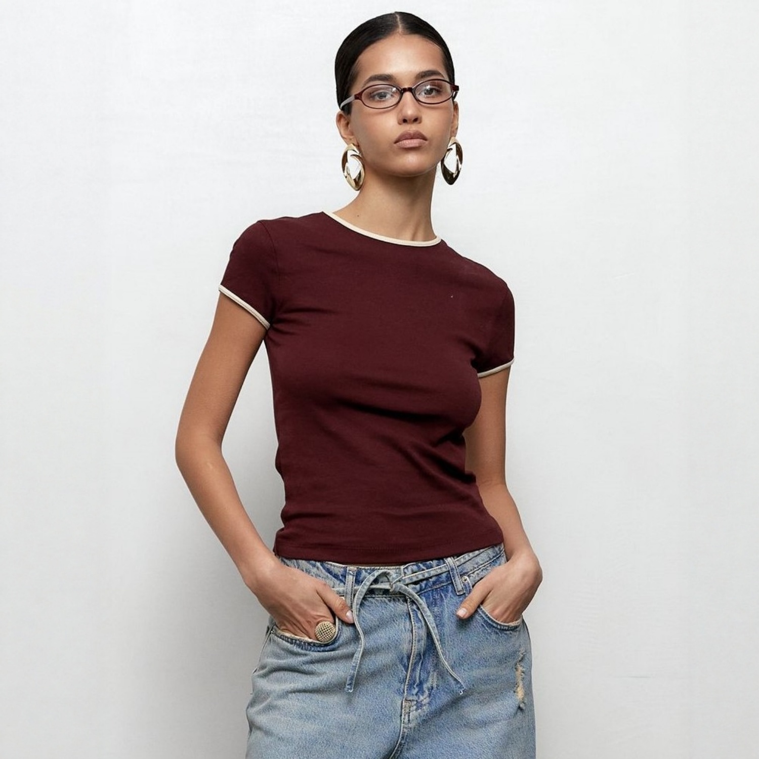 2025秋圆领撞色短款运动T恤