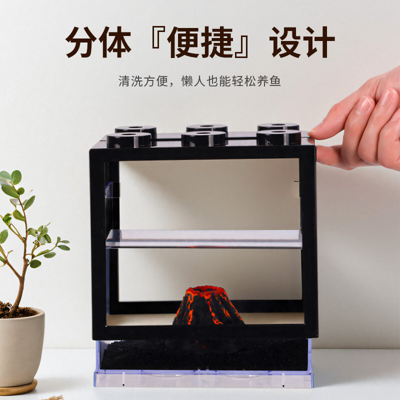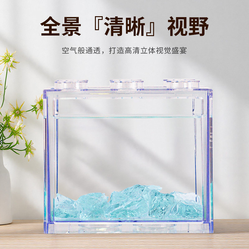 斗鱼缸亚克力网红积木盒造景装饰全套迷你小型桌面泰国斗鱼专用缸
