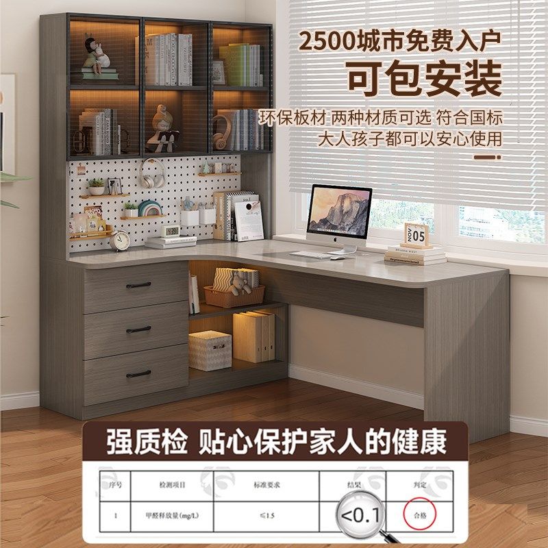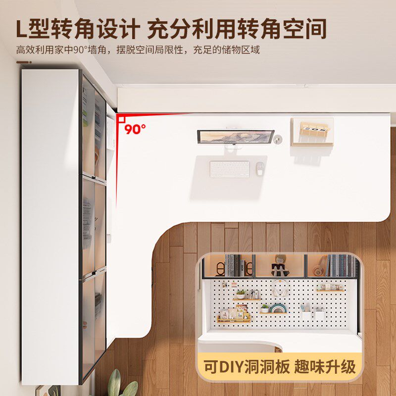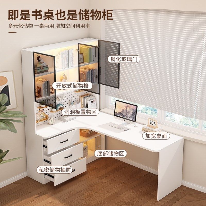 转角电脑桌实木书桌书架一体儿童写字桌卧室书房学习桌家用办公桌