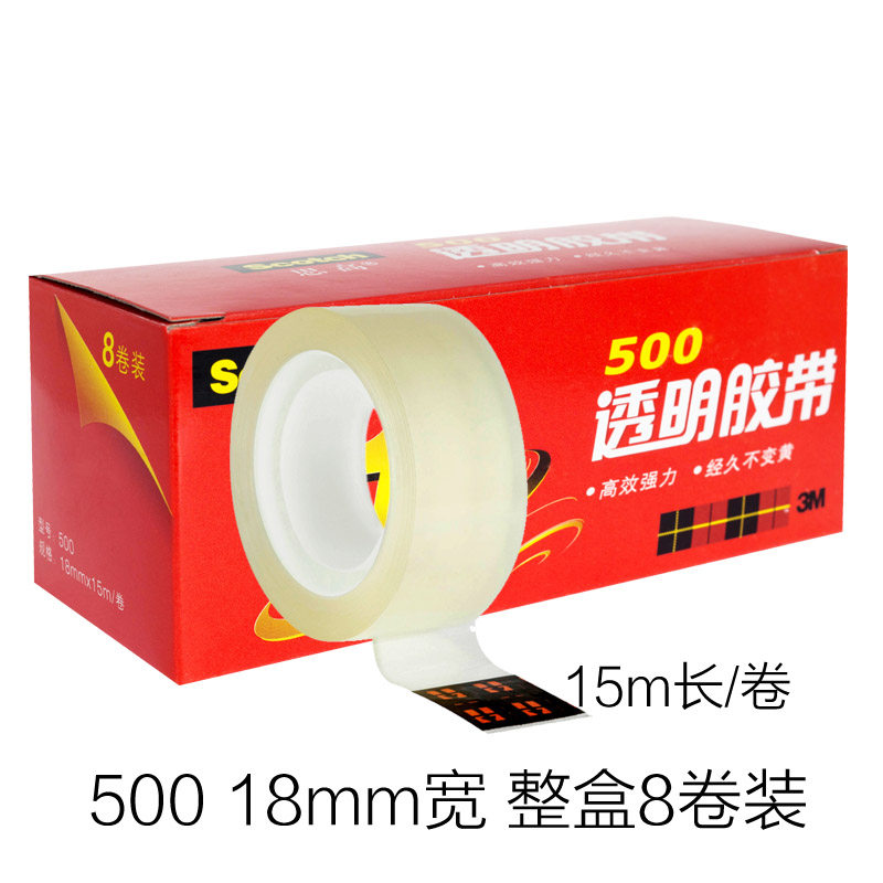 包邮3M Scotch思高500透明胶带 学生玻璃胶 DIY胶带条 不变黄15m