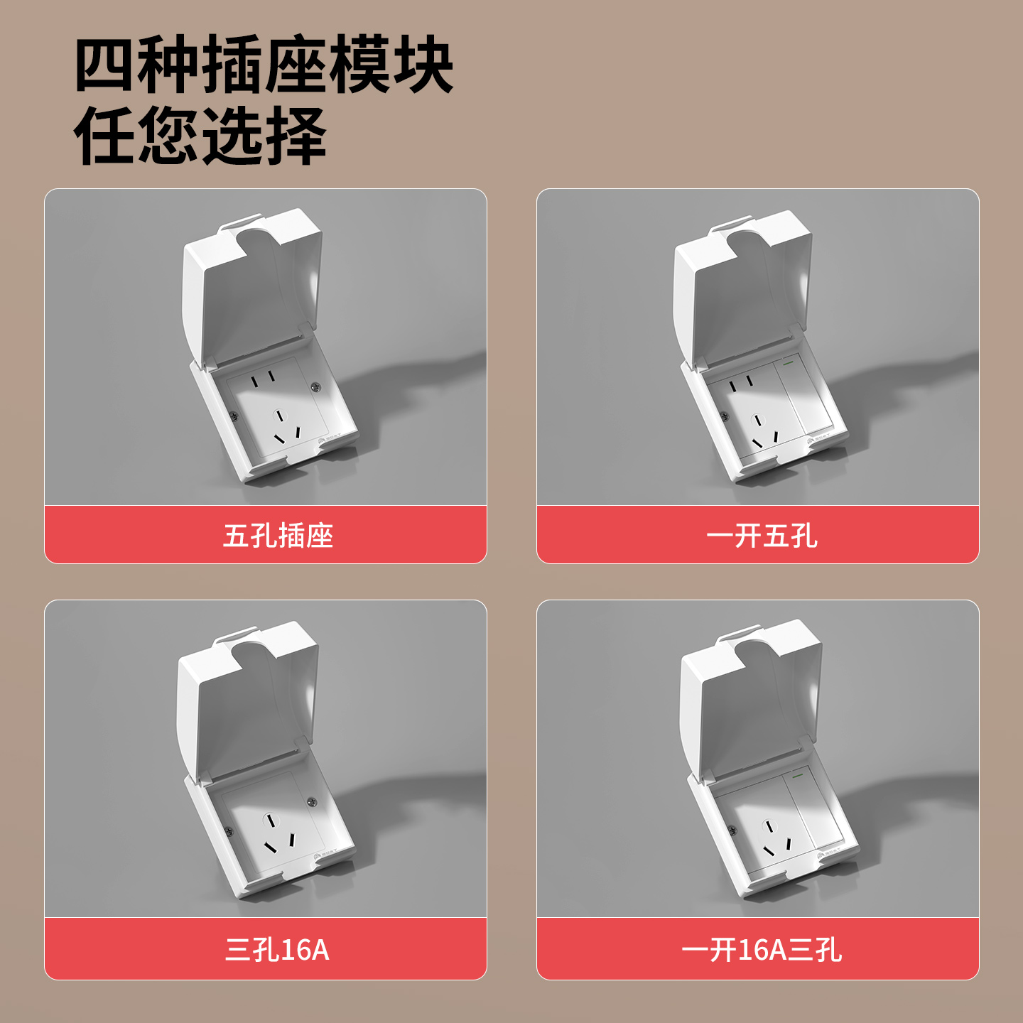 86型防水插座10A五孔防溅型暗装防水盒浴室卫生间插座防水罩一体