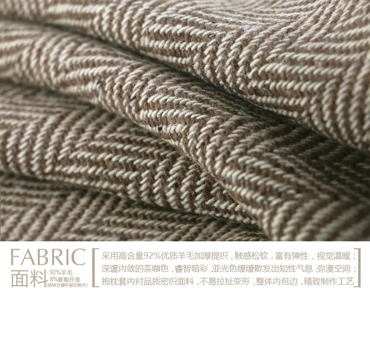 彩虹骑士高端 羊毛茶咖色提花 家居沙发样板房软装靠枕靠垫抱枕套