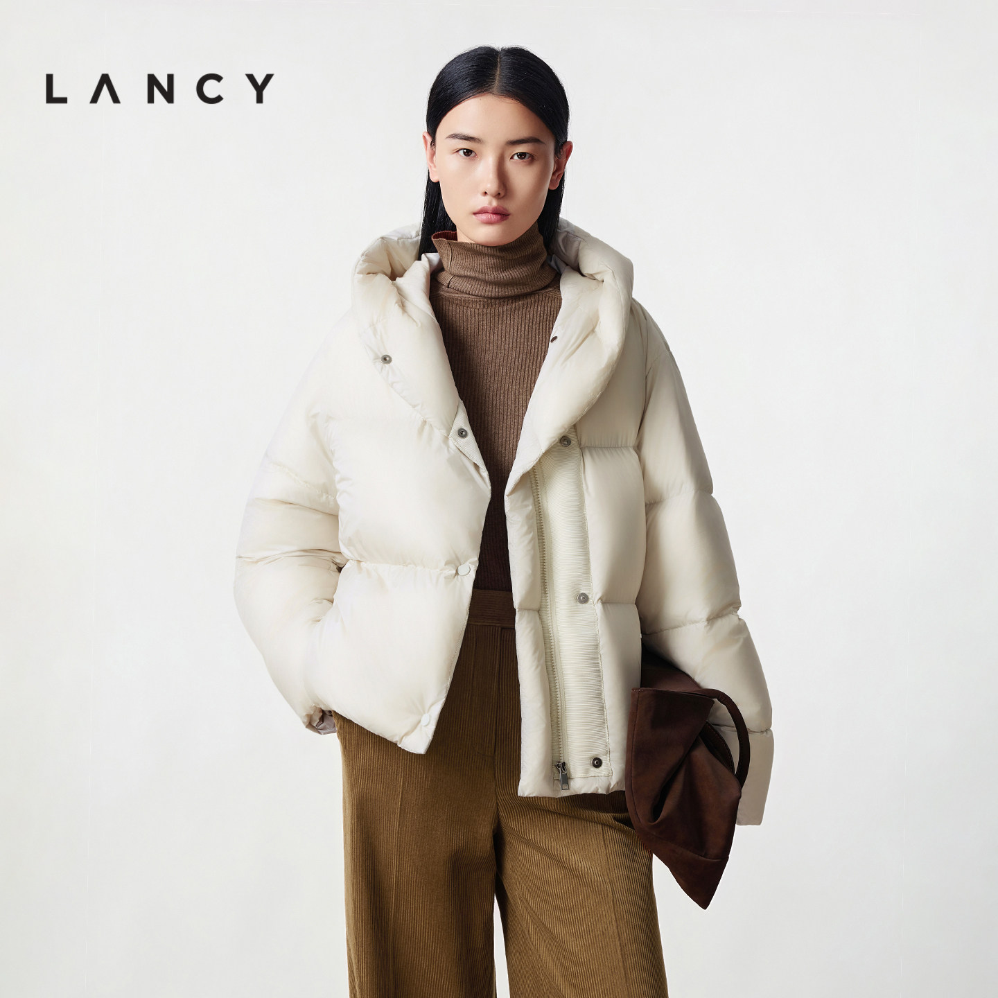 【匈牙利白鹅绒】LANCY/朗姿2025冬季新款连帽廓形短款面包羽绒服