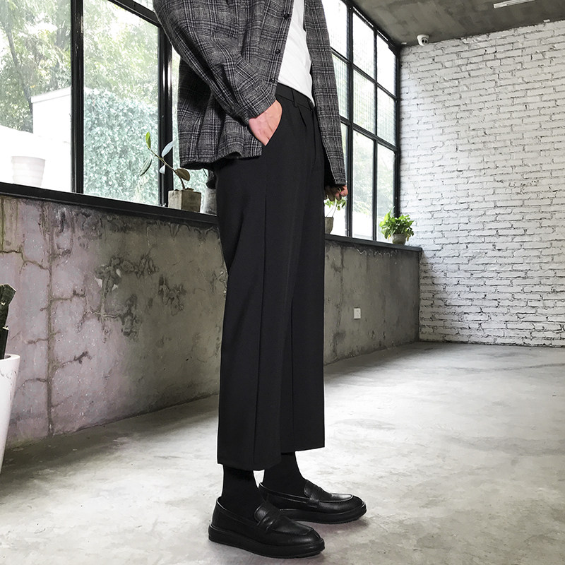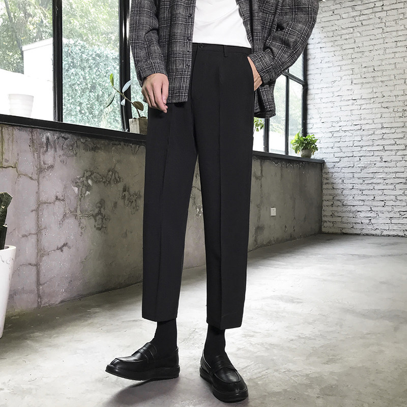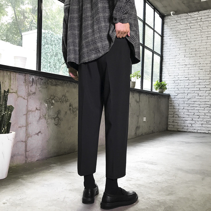 ins直筒休闲裤韩版男士九分裤工装西裤男港风潮流大码宽松阔腿裤