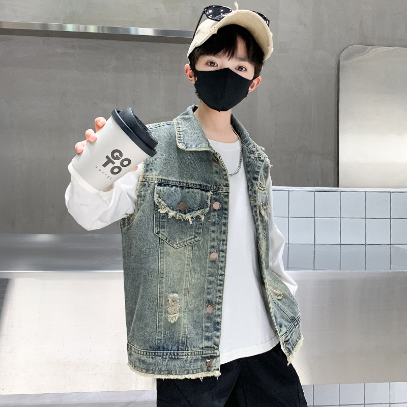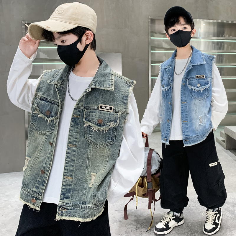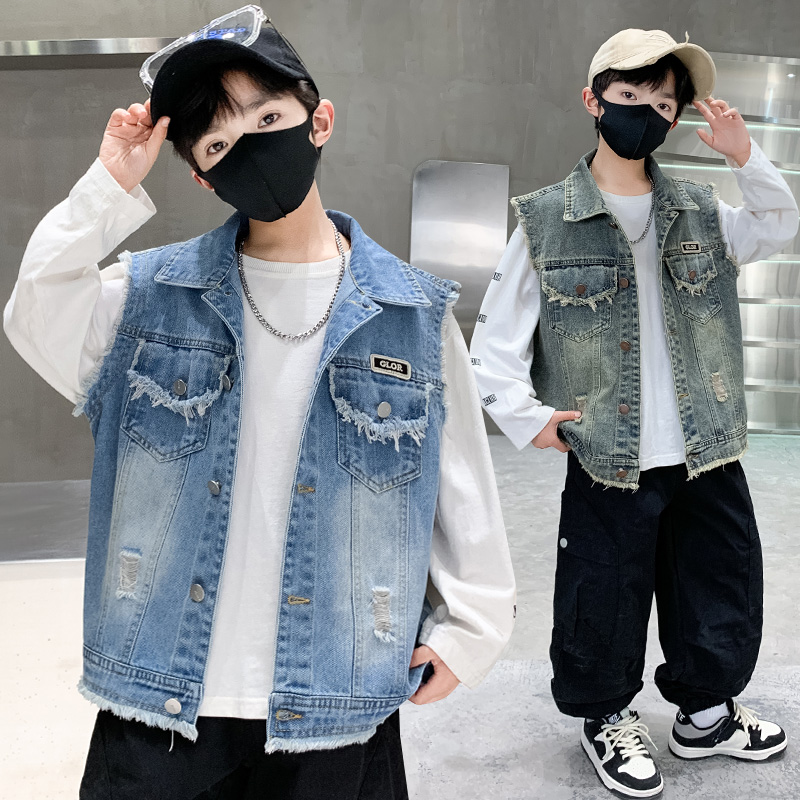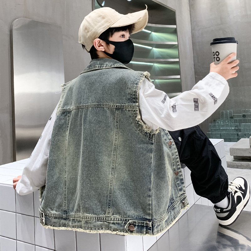 2025年男童马甲春秋款新款中大童春装男宝牛仔马夹儿童痞帅坎肩外