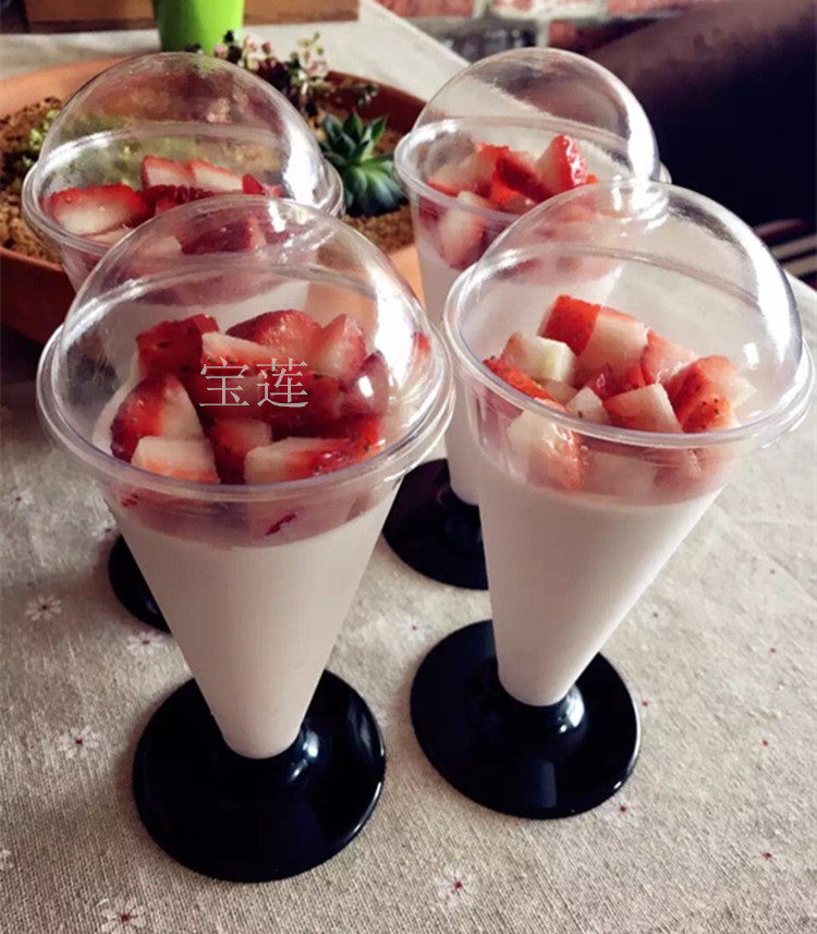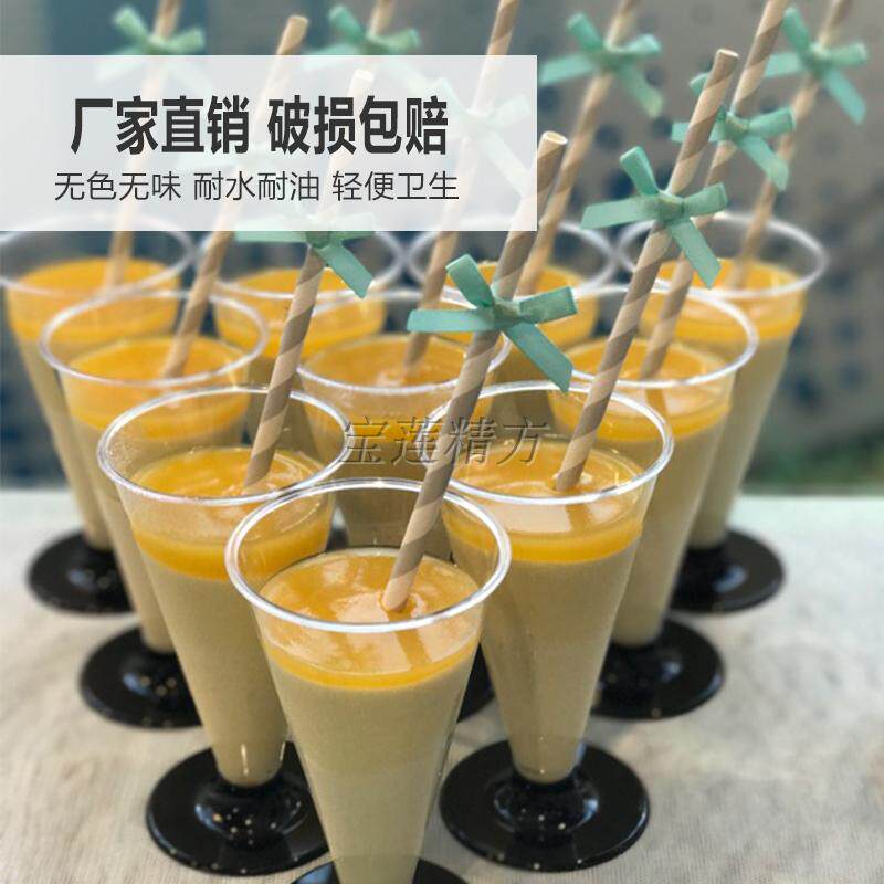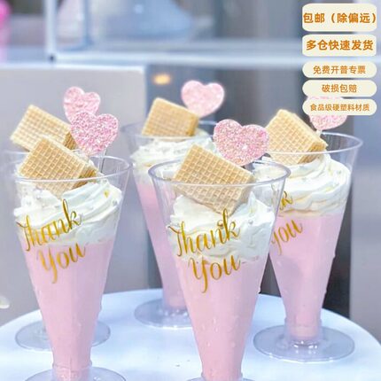 高脚慕斯杯木糠杯布丁杯鸡尾红酒香槟杯航空杯塑料一次性杯子带盖