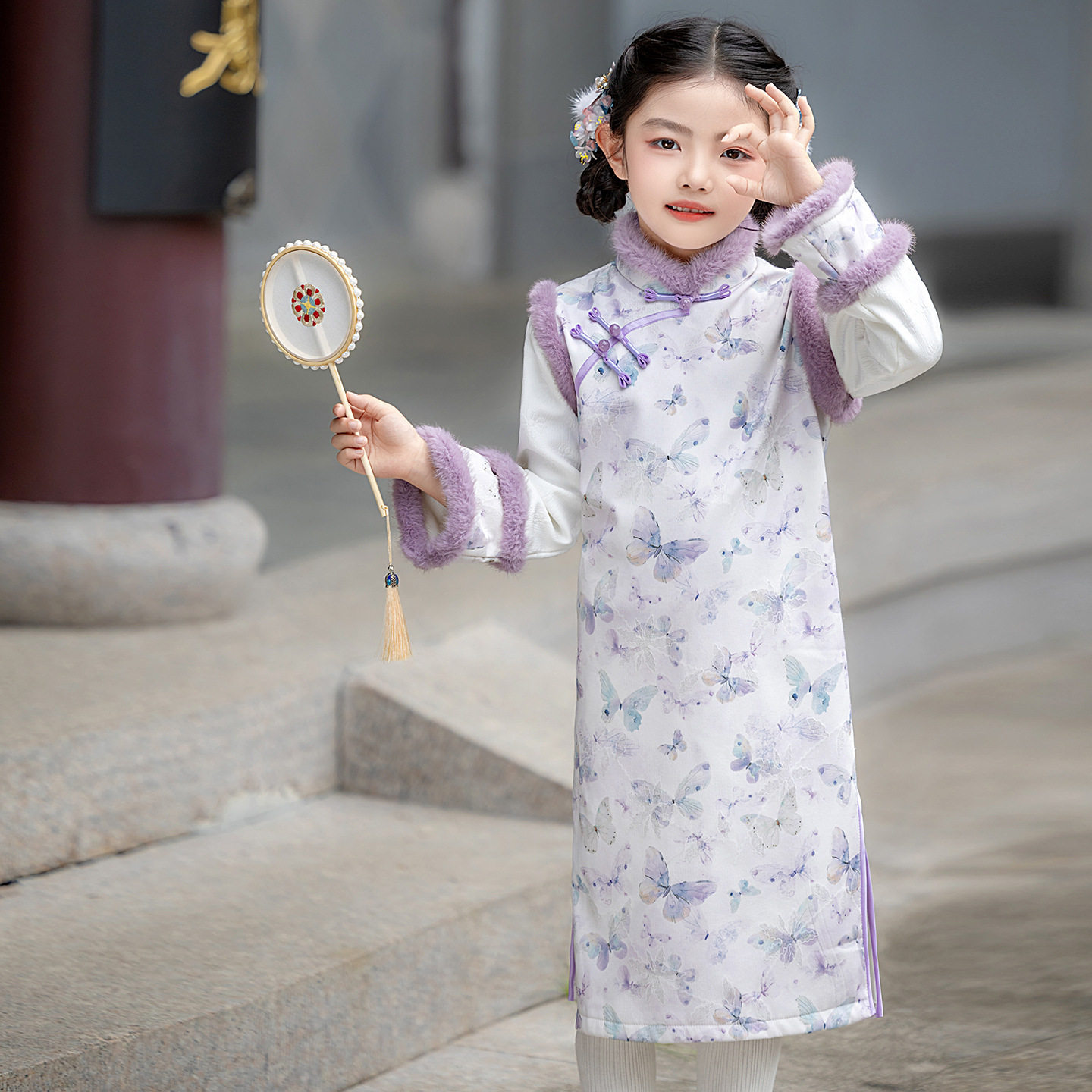 女童旗袍冬季长袖2025新款中国风母女装儿童唐装连衣裙中式拜年服