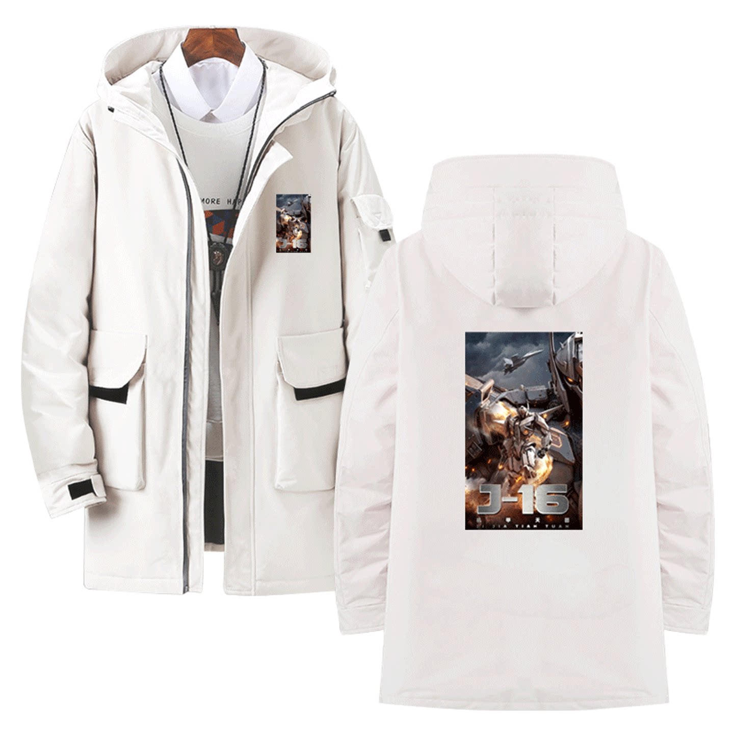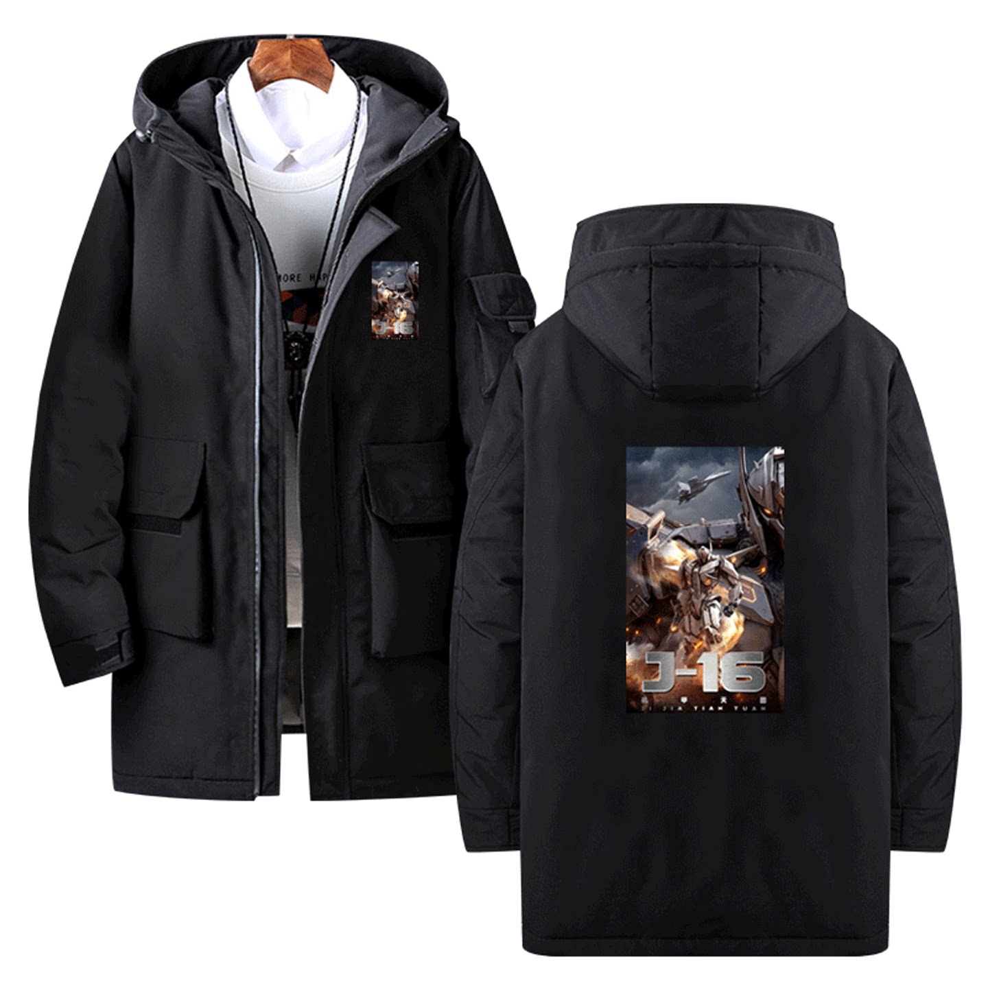 国潮动漫机甲纪元J-16变形战术机甲潜龙男女休闲情侣中长款羽绒服