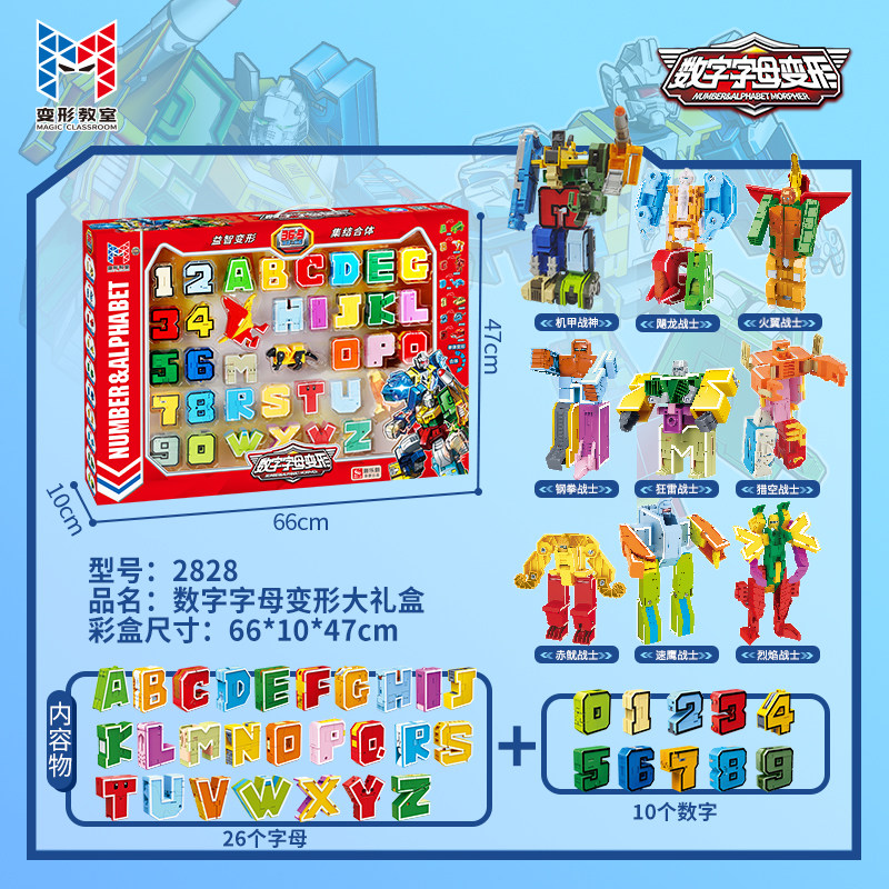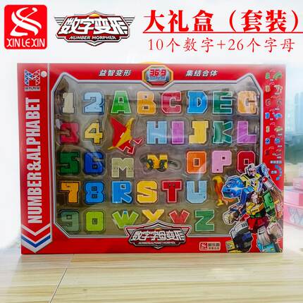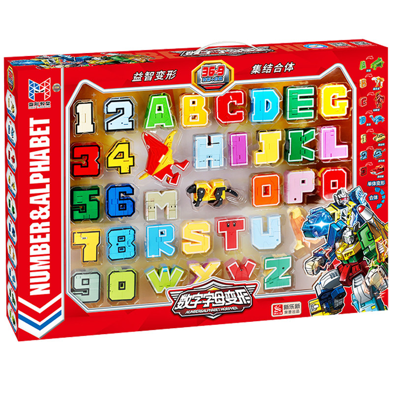 新乐新数字变形玩具字母金刚机甲百变机器人儿童益智汽车全套装