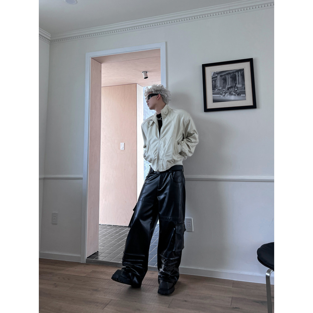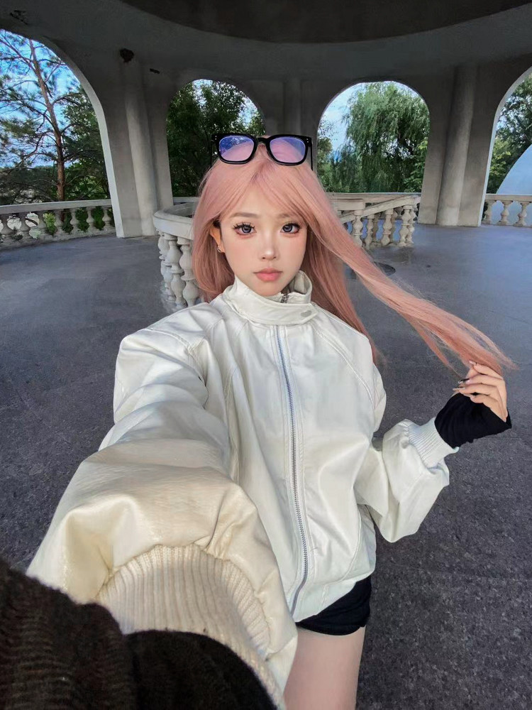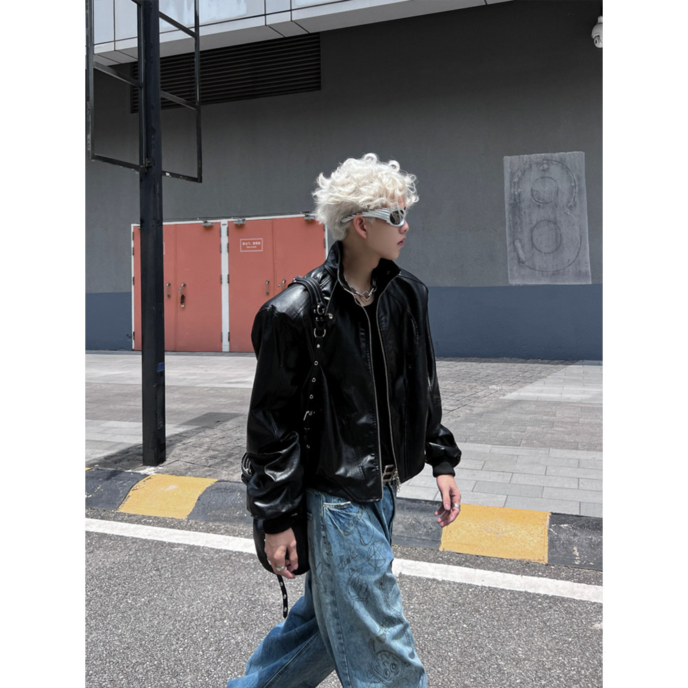 THREENINE 小众机车复古立领设计皮衣夹克男女短款pu皮外套百搭潮