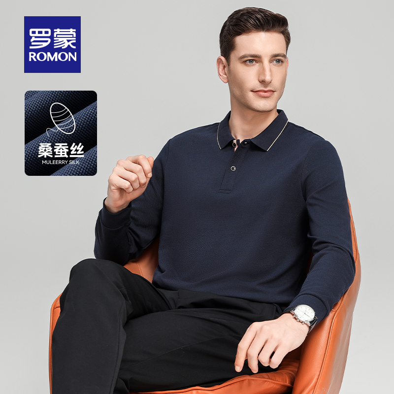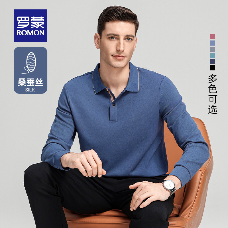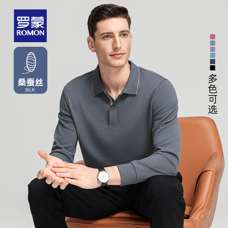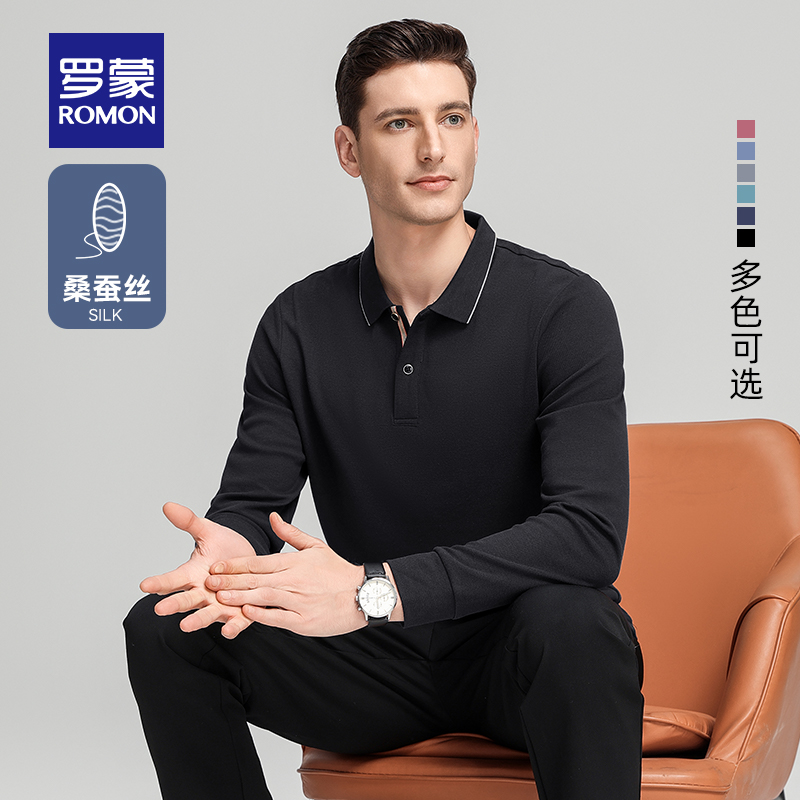 【含桑蚕丝】罗蒙男士商务休闲长袖POLO衫2025秋季新款透气T恤衫