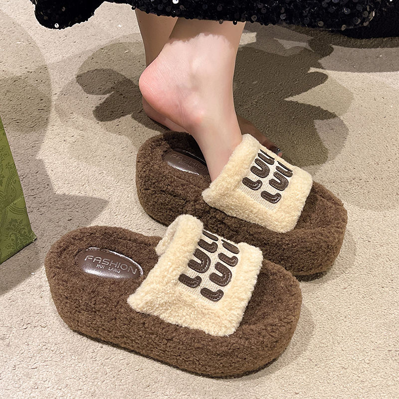 小个子增高8公分厚底毛毛拖鞋女秋冬季新款小码外穿松糕保暖棉拖