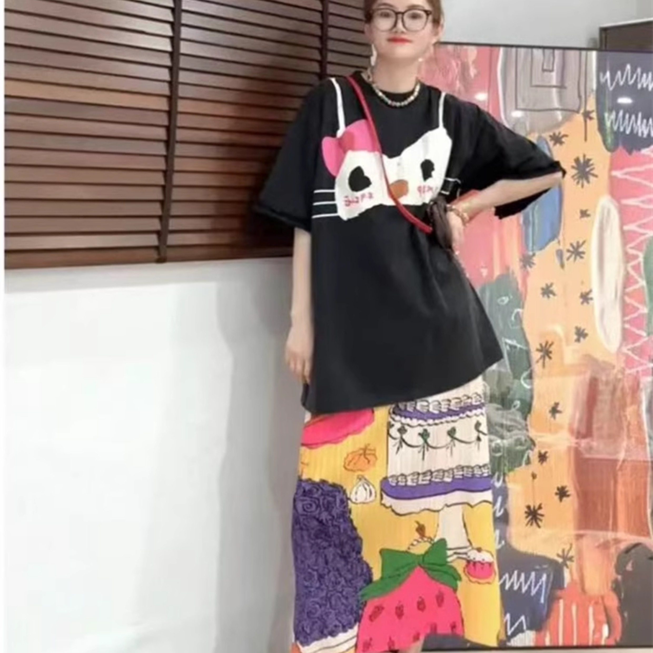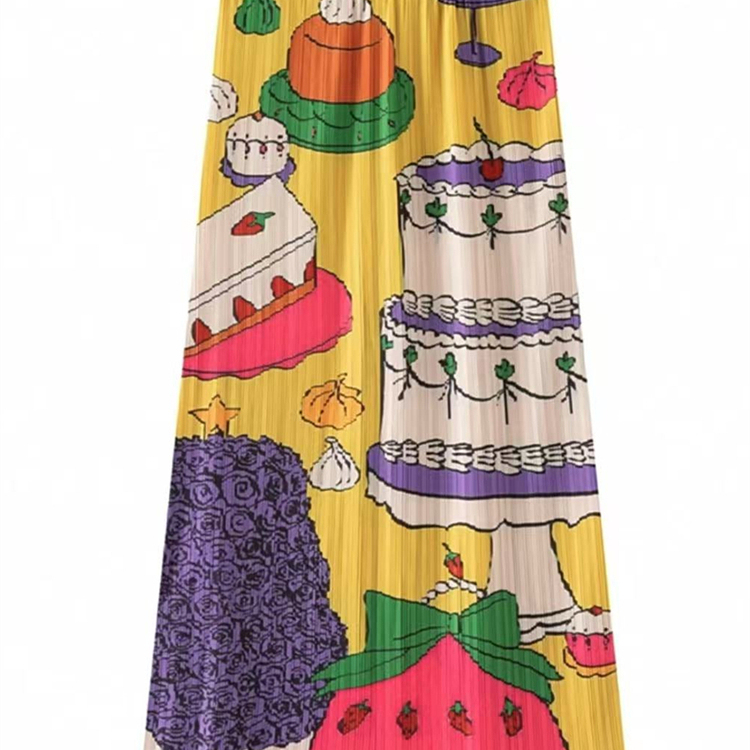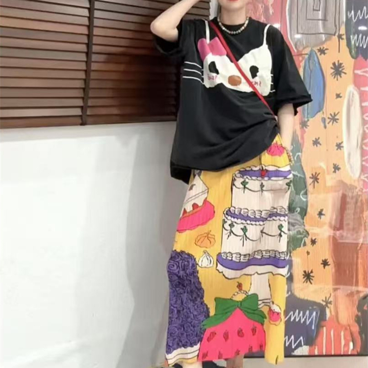 三宅半身裙小众设计感褶皱裙女夏季高腰复古蛋糕印花显瘦包臀裙