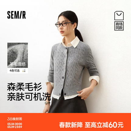 商场同款|森柔森马针织开衫女冬季短款绞花内搭2025新款法式毛衫