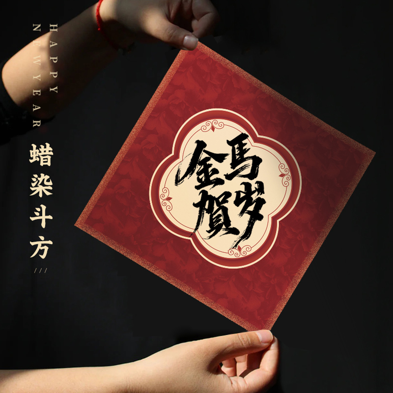 国潮空白对联纸蜡染微喷宣纸七言书房楹联专用纸毛笔手写福字斗方