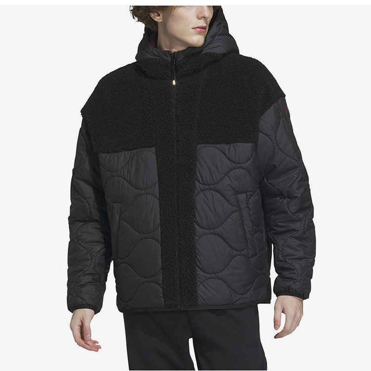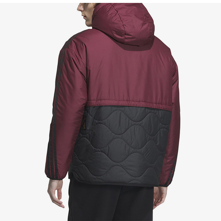 阿迪达斯棉服男装冬季新年款红色双面穿保暖连帽运动服加厚外套