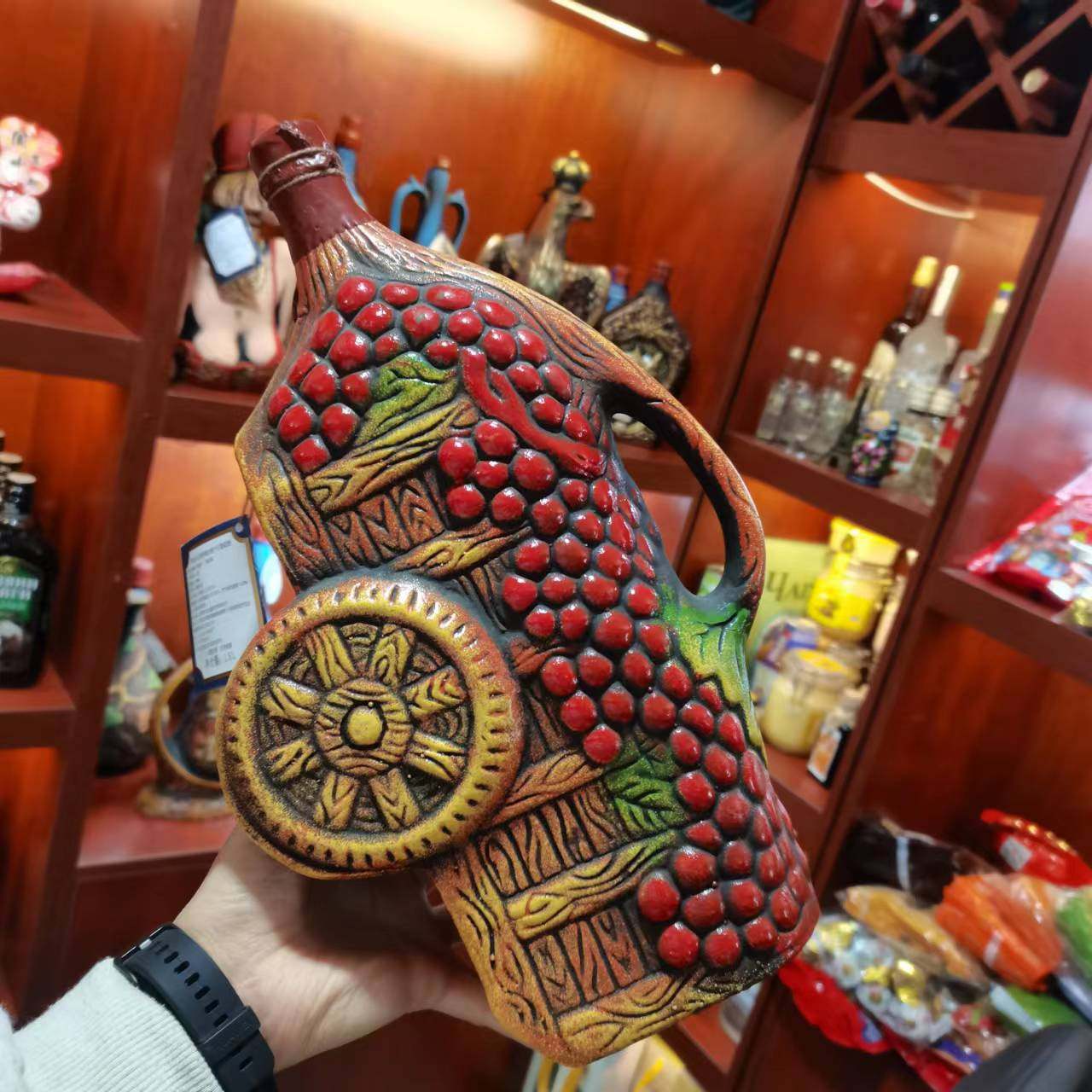 格鲁吉亚彩陶进口红酒陶瓷艺术摆件萨佩拉维干红半甜葡萄酒俄罗斯