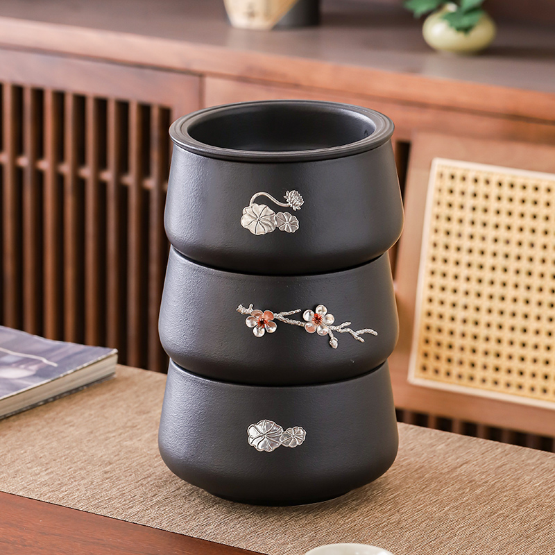 带盖茶洗茶渣缸陶瓷建水特大号水盂废水桶烟灰缸茶具配件茶水缸