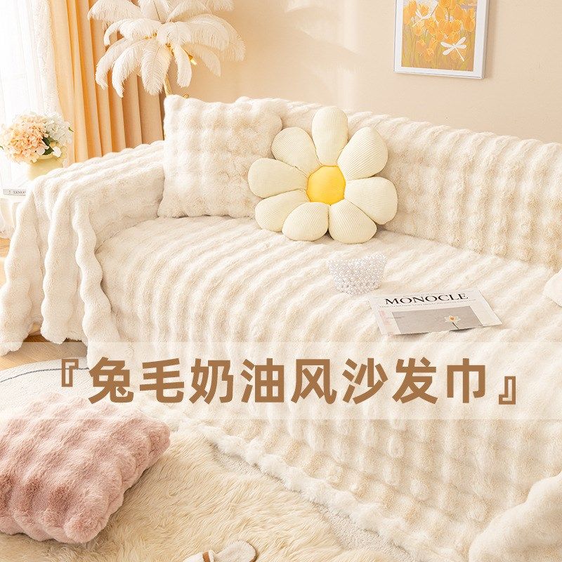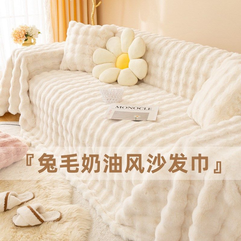 秋冬新款泡泡绒沙发巾不掉毛软绵感沙发垫保暖加厚兔毛绒沙发盖巾
