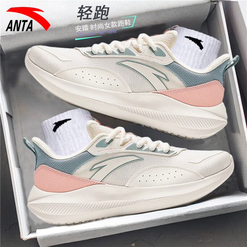 安踏女鞋跑鞋女子跑步鞋网面透气黑白鞋子休闲鞋官方旗舰运动鞋女