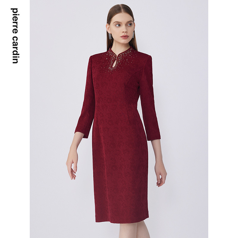 【皮尔卡丹女装】秋季端庄小众复古长袖连衣裙【专柜正品】