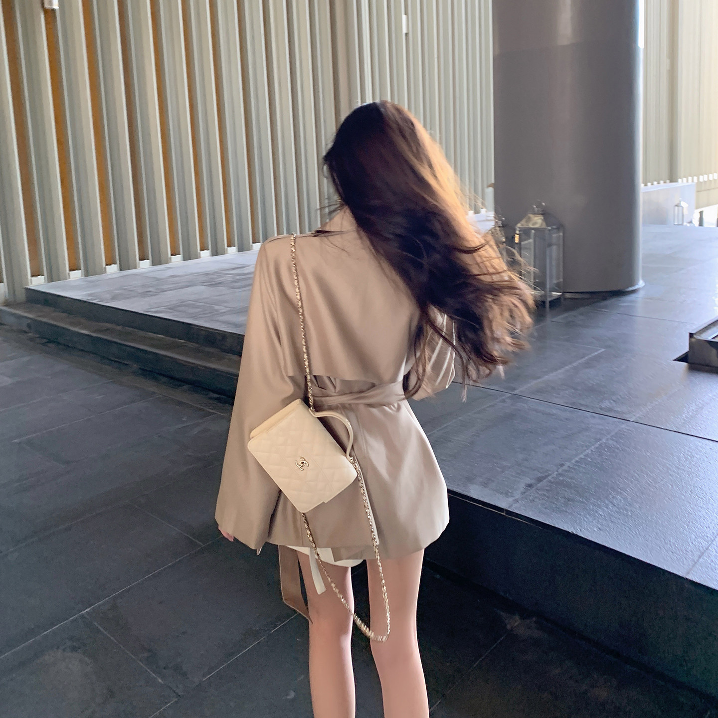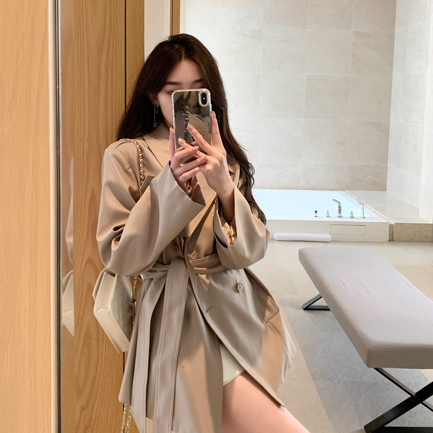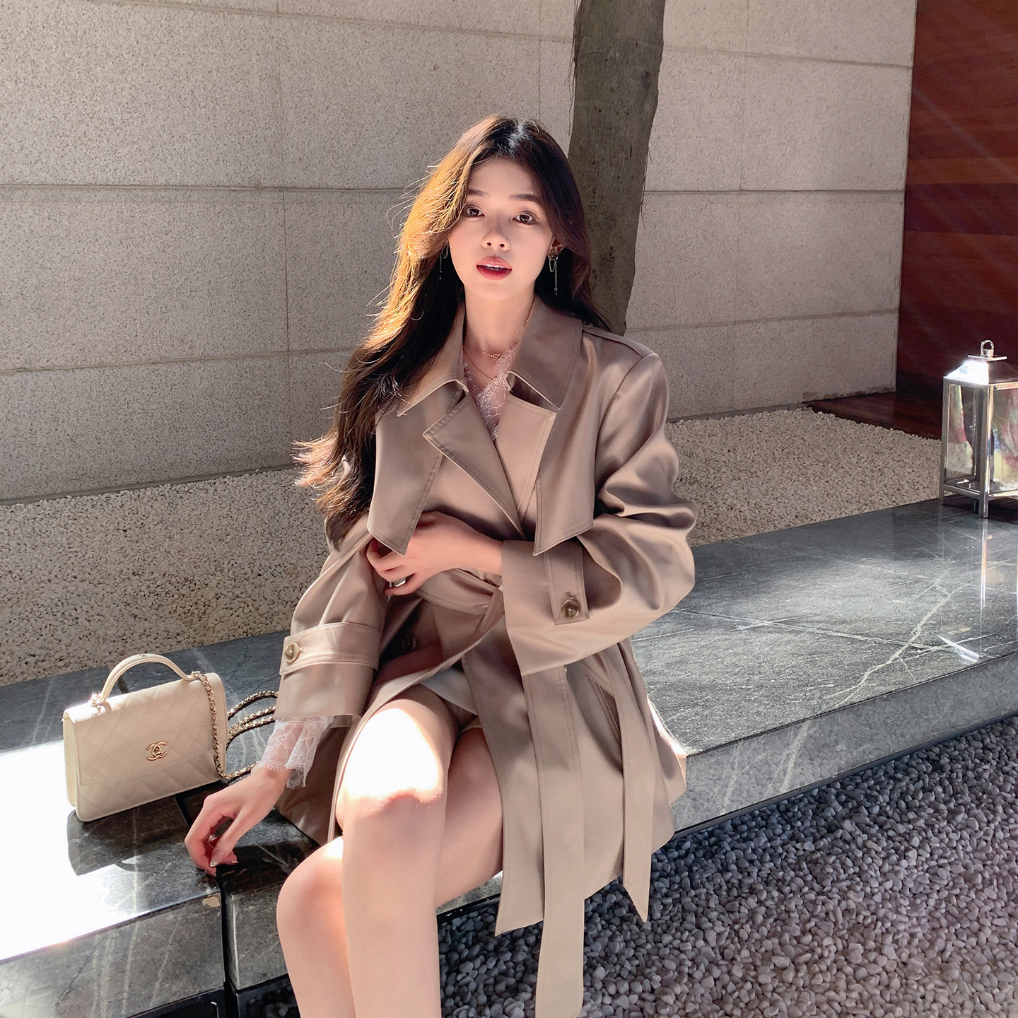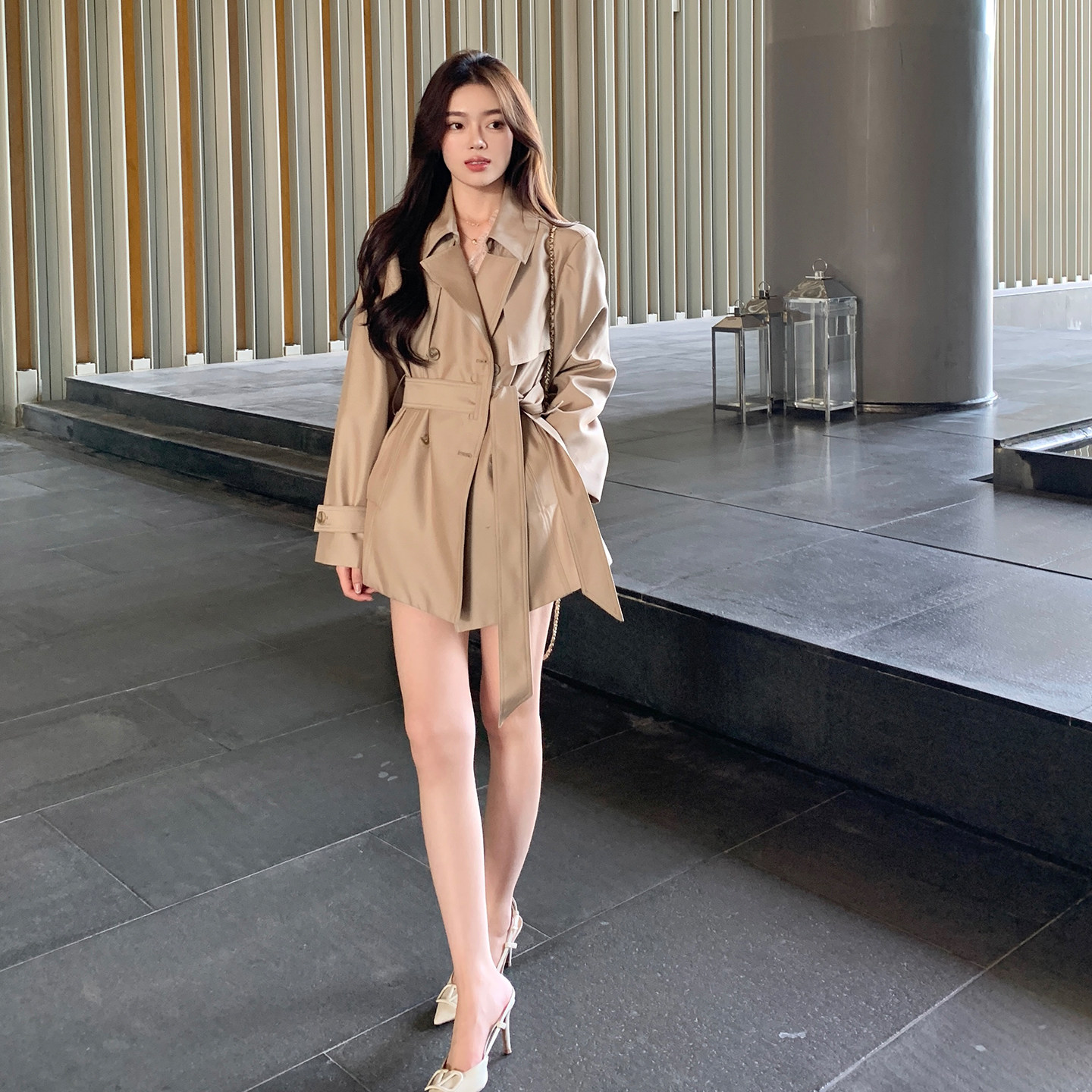 ByYou 秋冬新款高级感卡其色短款风衣外套女英伦风双排扣收腰大衣