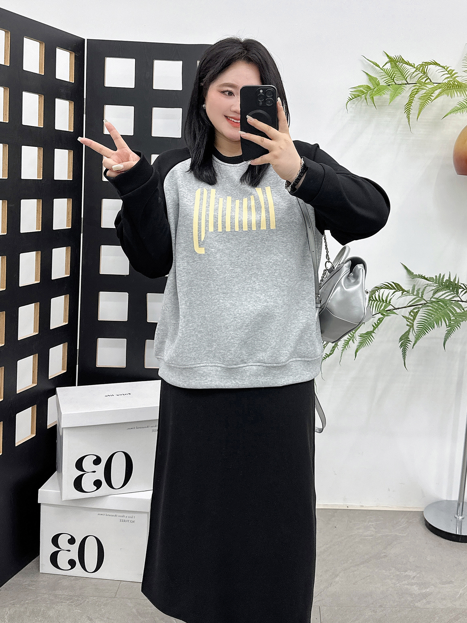 宛宛大码卫衣女胖mm秋季2024新款减龄圆领印花拼色宽松休闲套头衫
