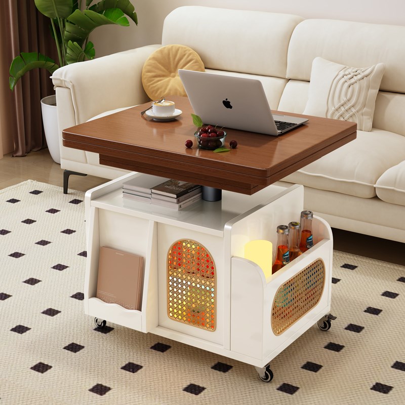 升降茶几折叠移动边几推车实木茶台茶桌小户型客厅多功能餐桌两用