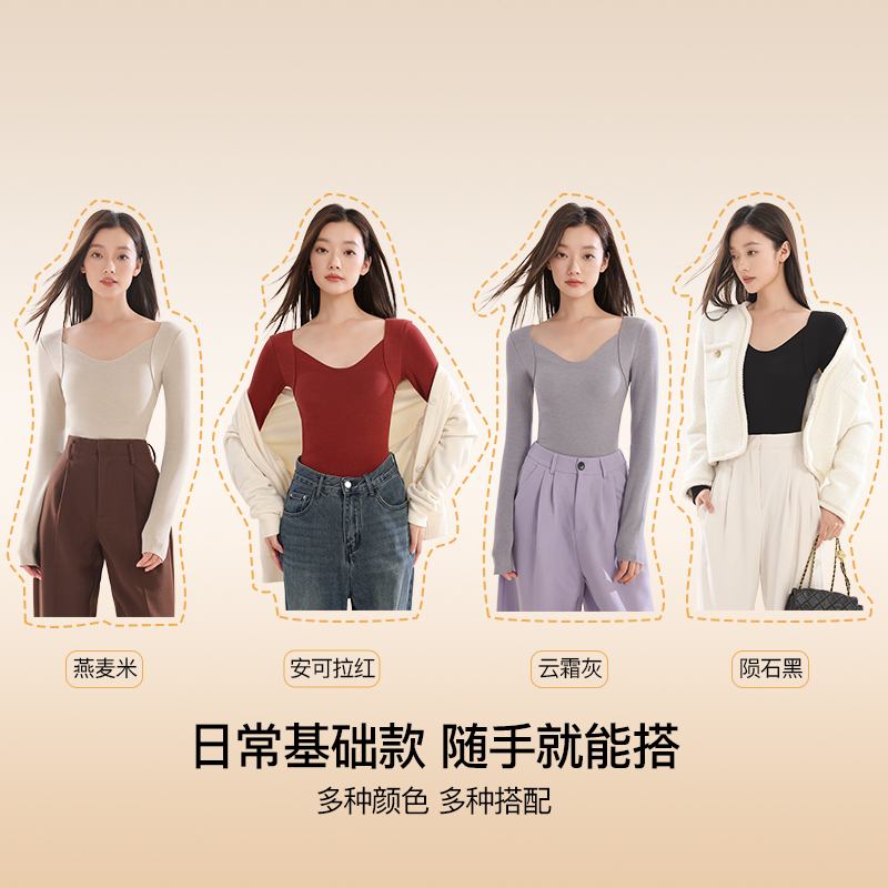 RAU保暖内衣女带胸垫羊绒蚕丝秋冬季新款加绒加厚上衣长袖打底衫