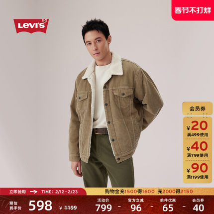 Levi's李维斯男士复古哈灵顿风翻领宽松保暖仿羊羔绒牛仔厚外套