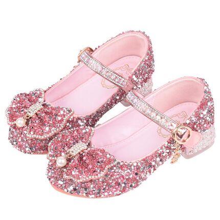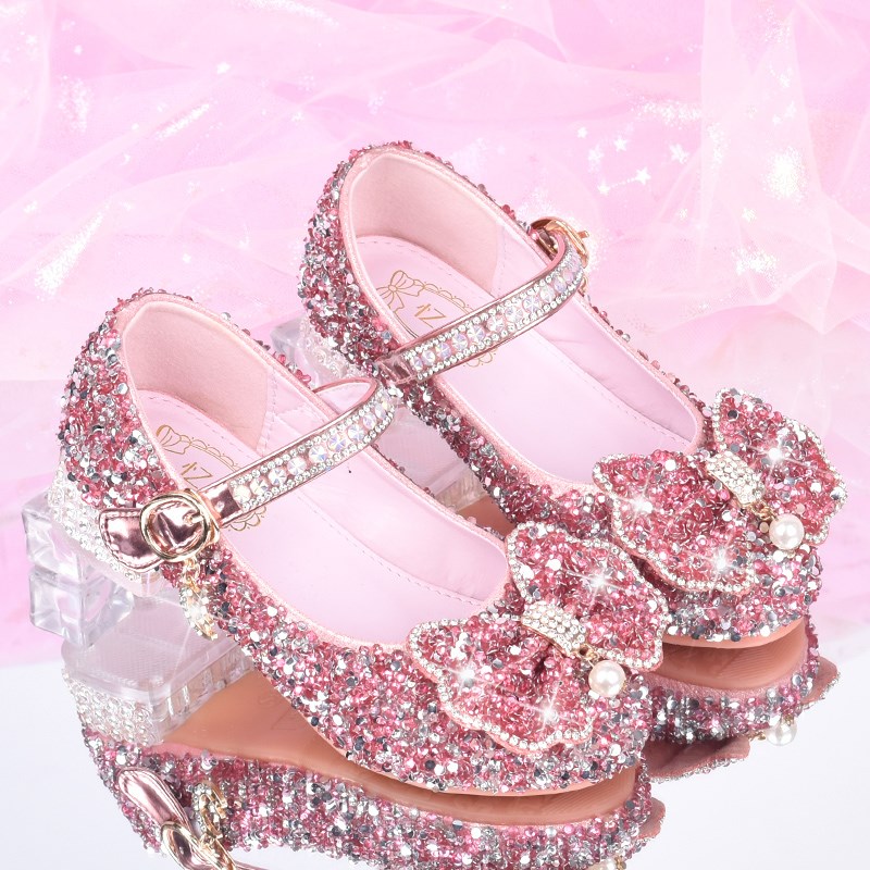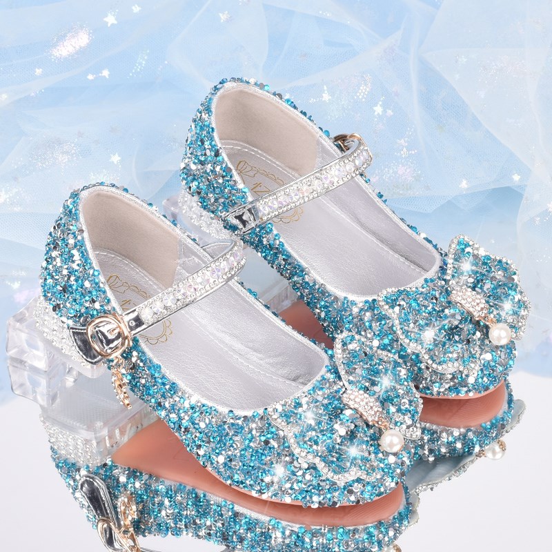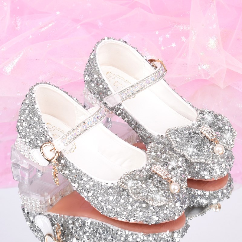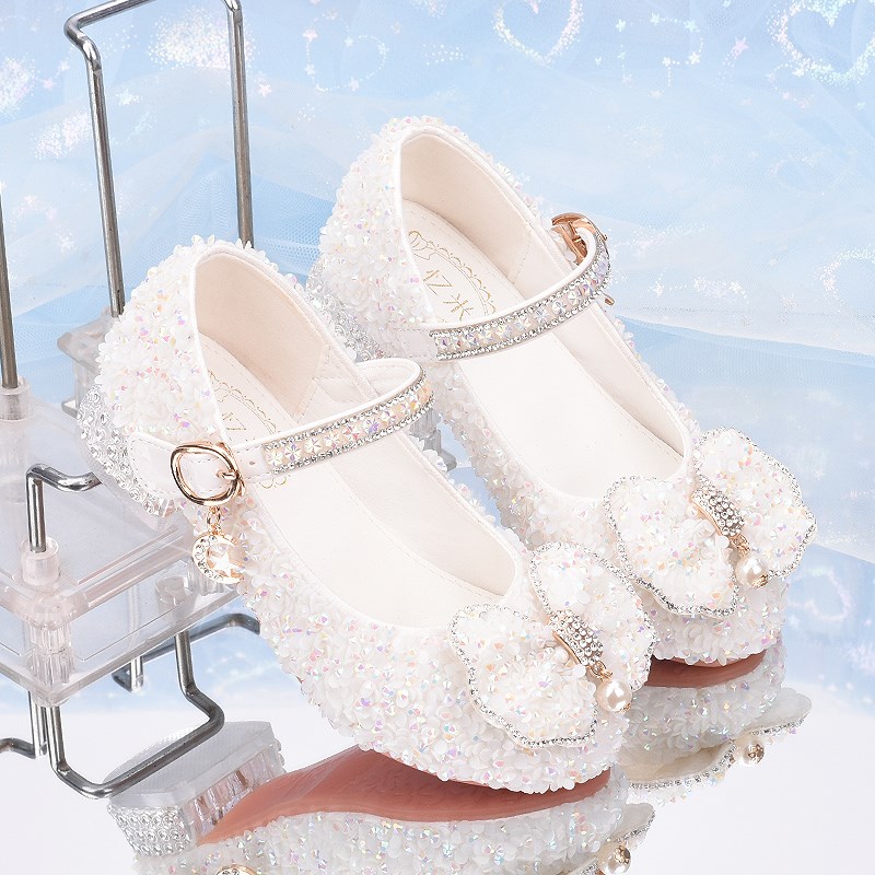儿童高跟鞋白色女童公主鞋银色模特走秀礼服演出鞋软底女孩水晶鞋