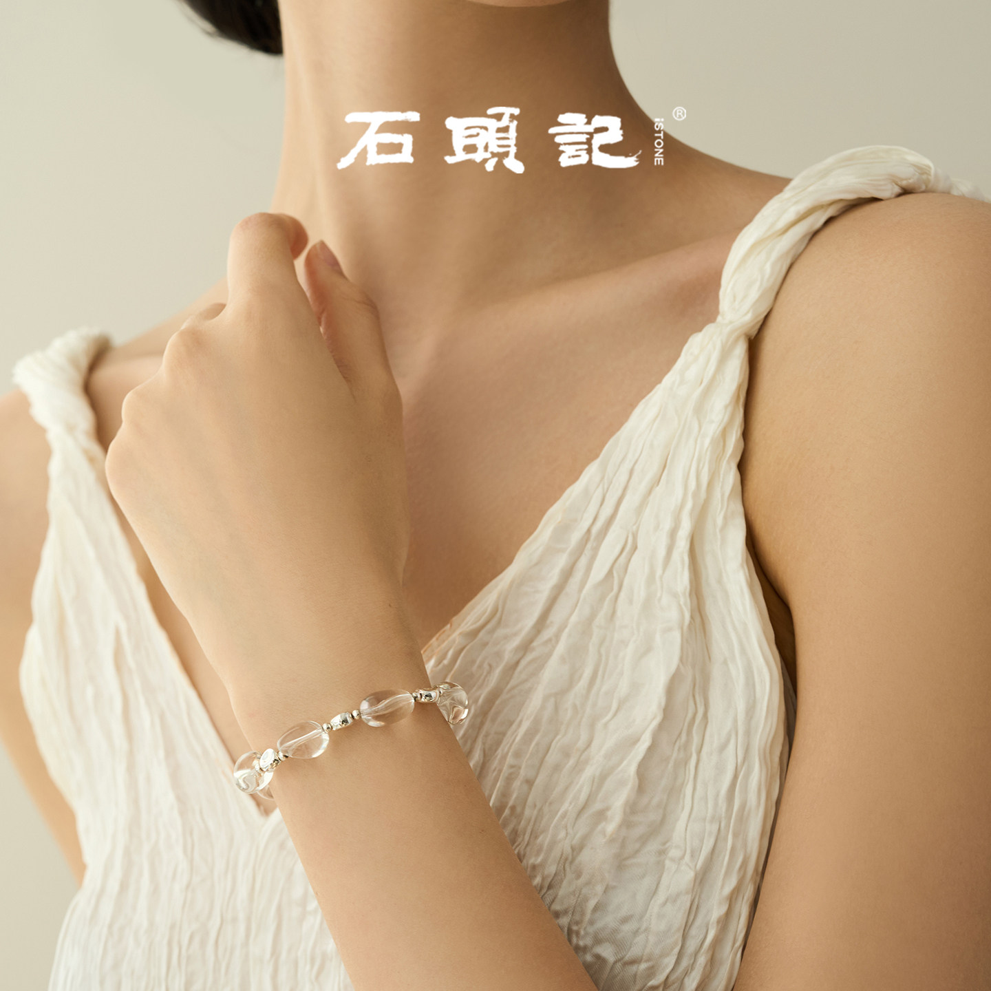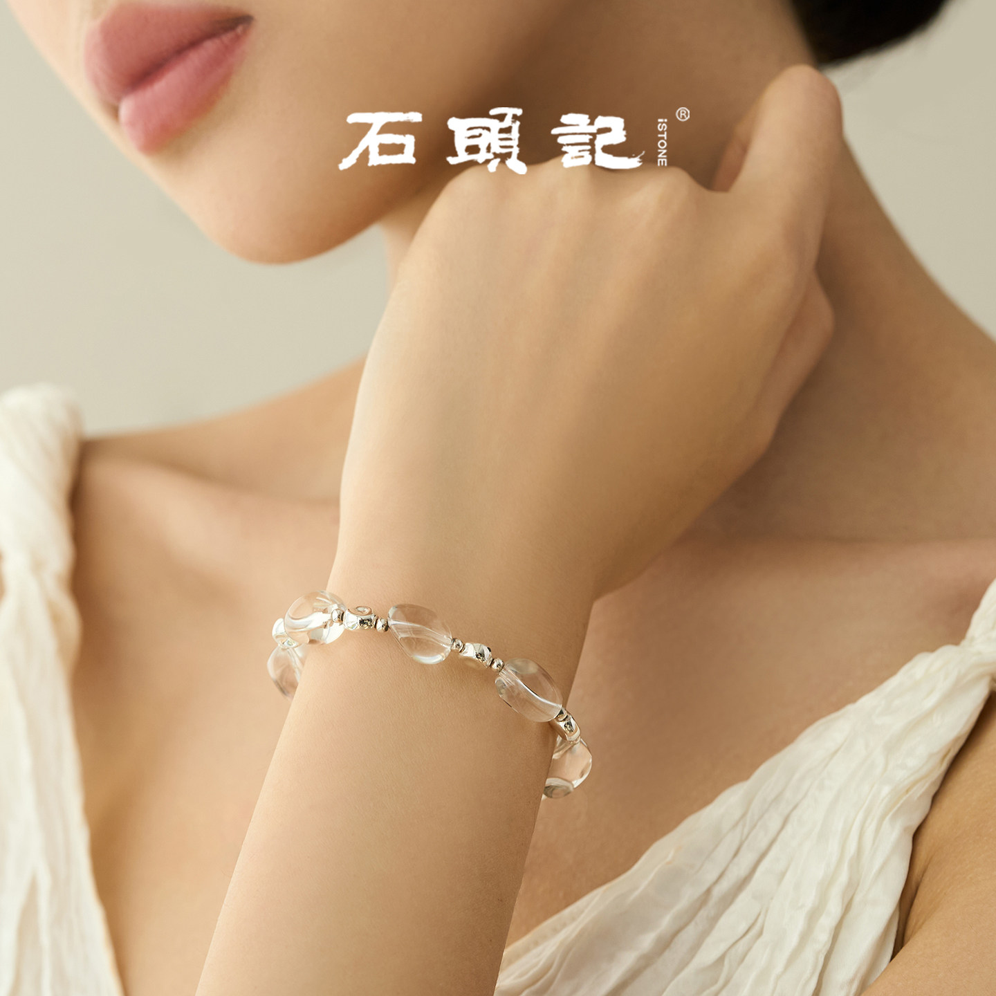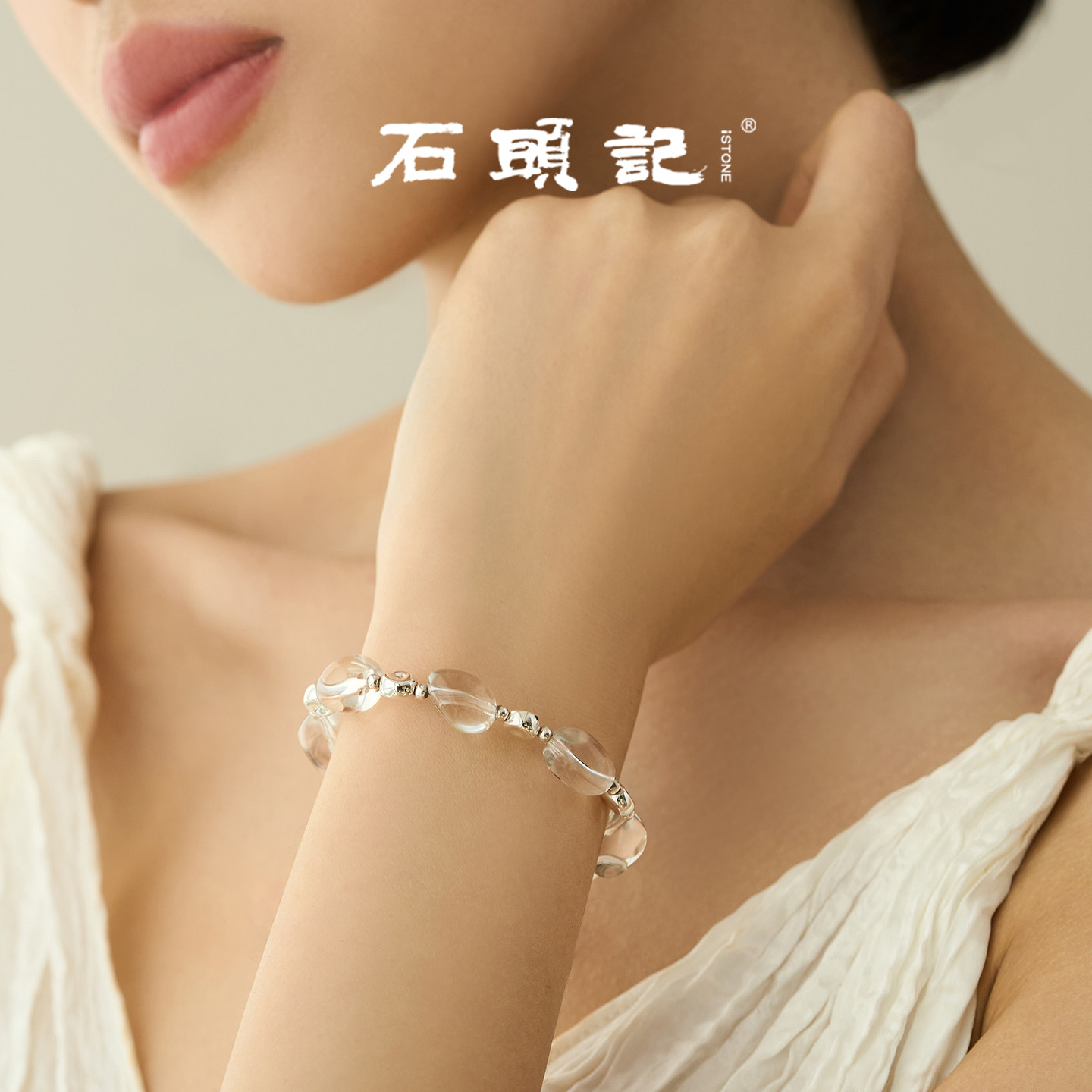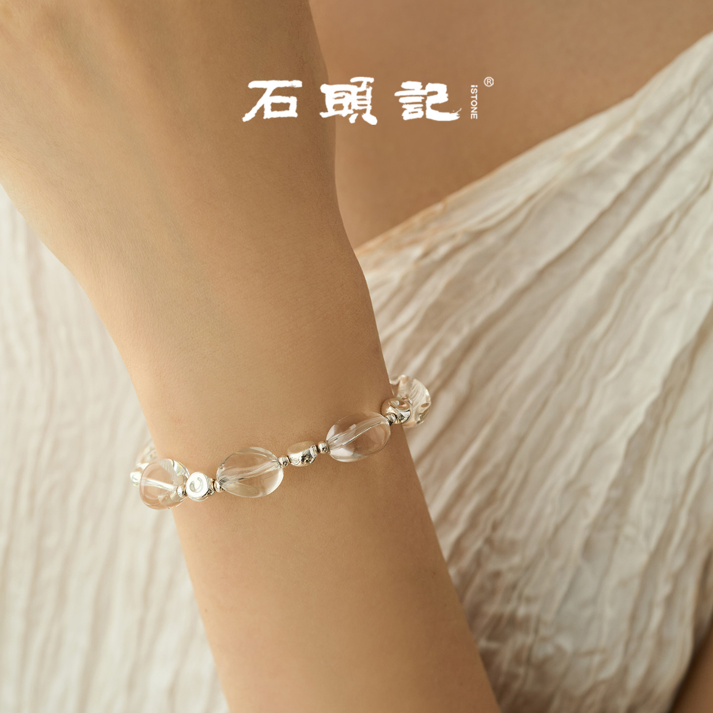 iSTONE/石头记白水晶手串天然宝石925银磁吸串珠手链情绪稳定手饰