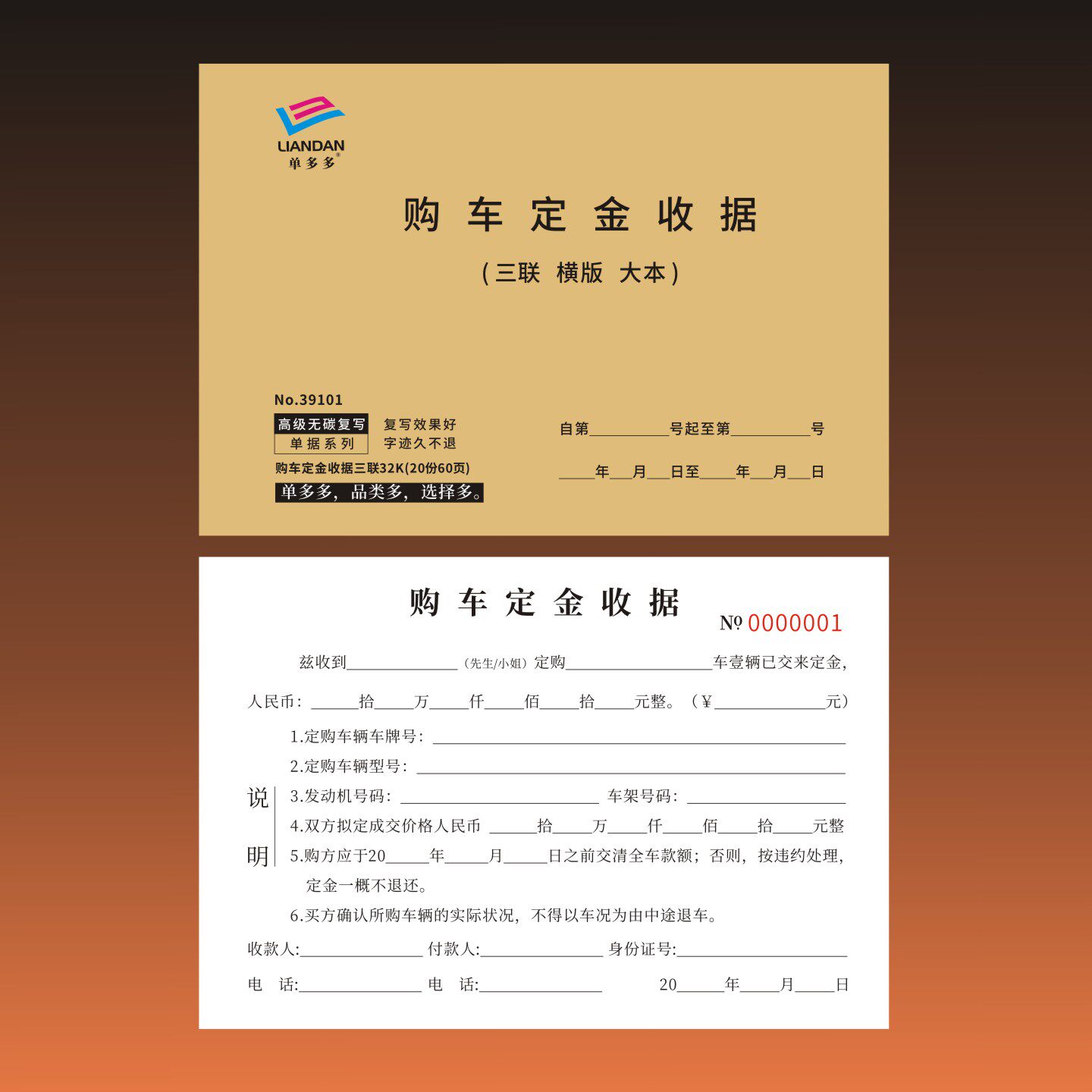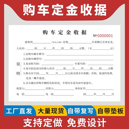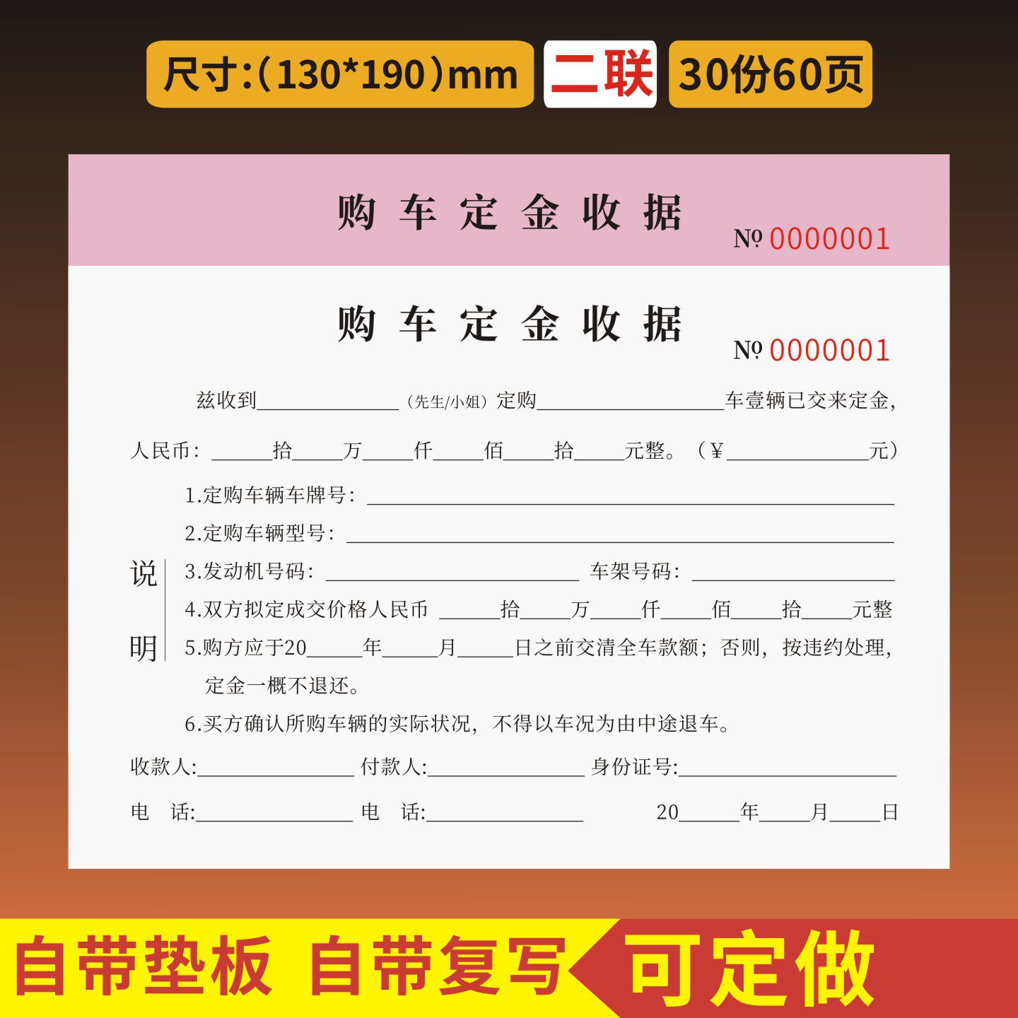 购车定金收据定制订做二联三联无碳复写车行汽车销售预定交付订金凭证单据机动车买卖交易协议书二手车购买表