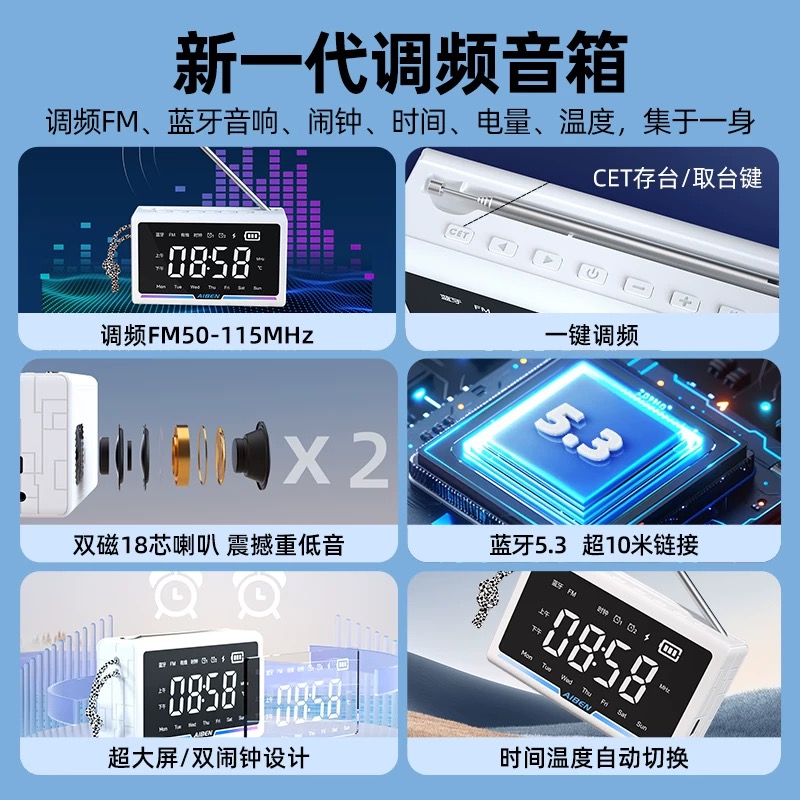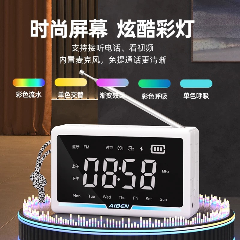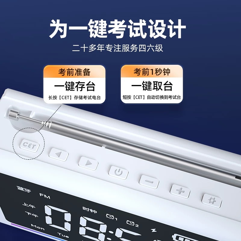艾本桌面时钟闹钟FM调频收音蓝牙音响大学英语四六级考试收音机