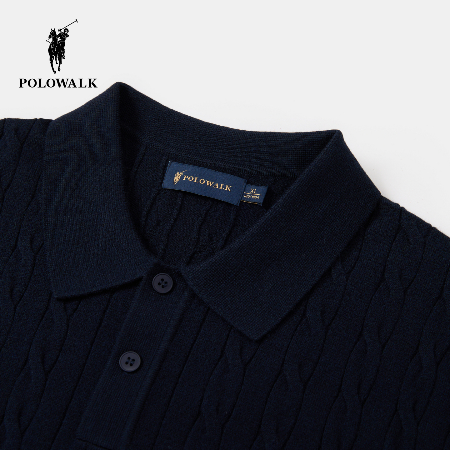 POLOWALK男士短袖针织衫2025秋季新品时尚修身版翻领绞花针织T恤