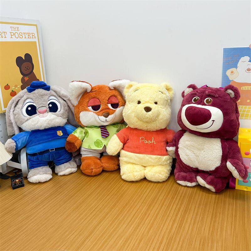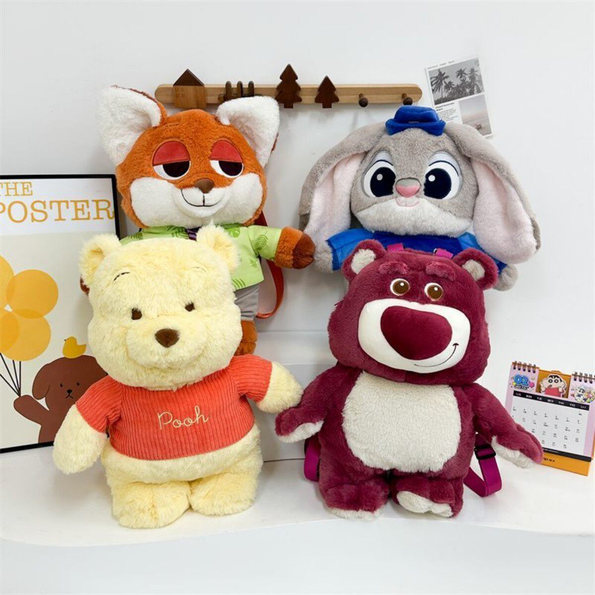 新款动物城卡通毛绒玩偶双肩包朱迪尼克草莓熊公仔背包维尼熊包包