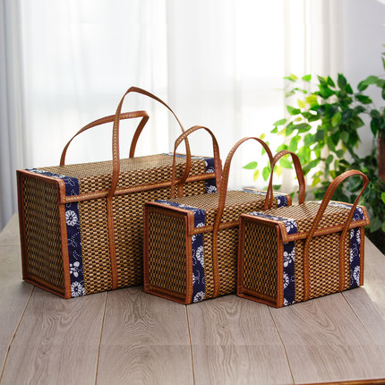 手提兰花布竹编竹筐手提竹篮年货大号包装礼盒鸡蛋水果大闸蟹竹篮