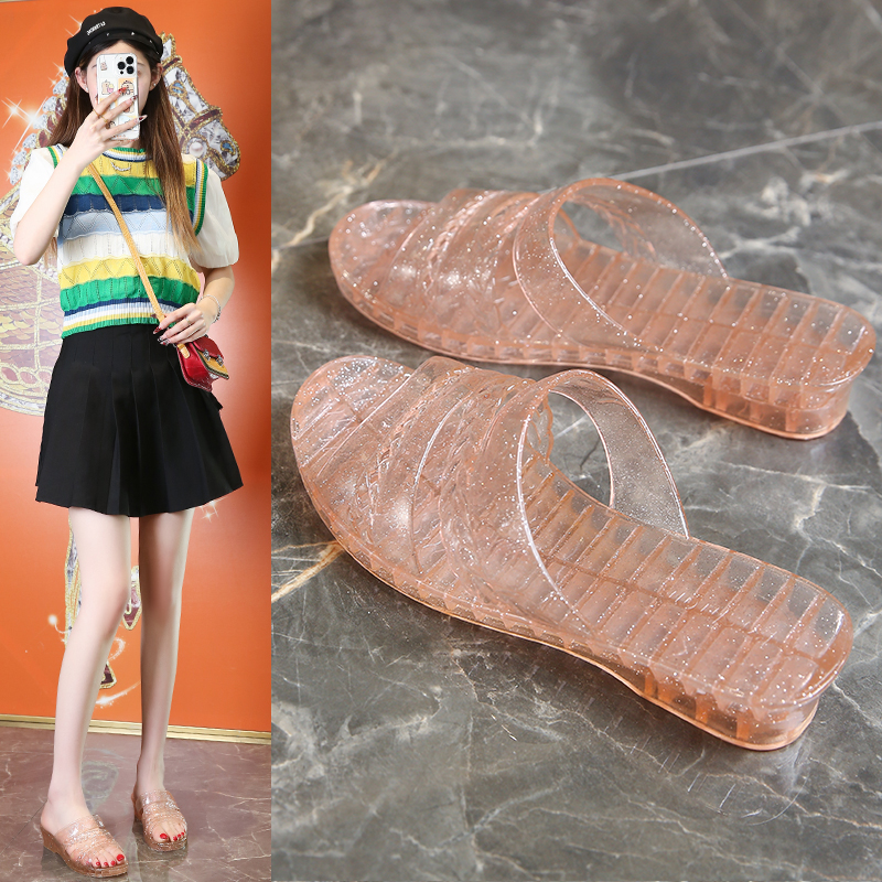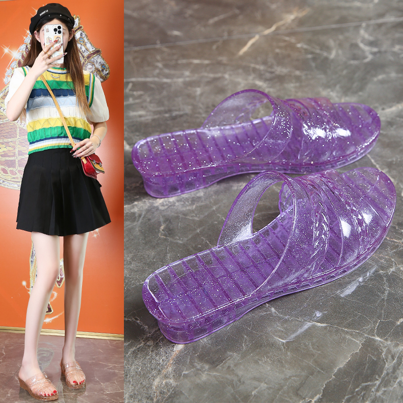 2025年新款水晶拖鞋女透明夏季天坡跟简约家居室内怀旧经典防臭