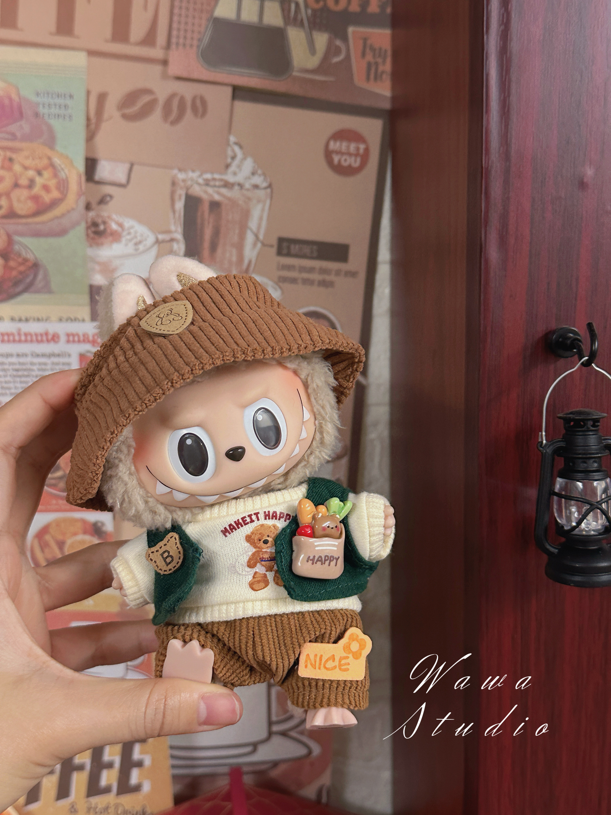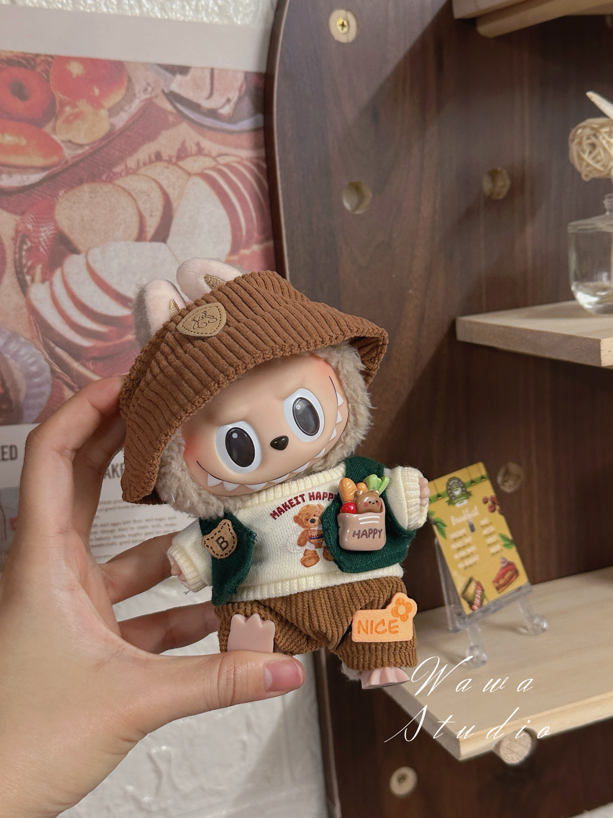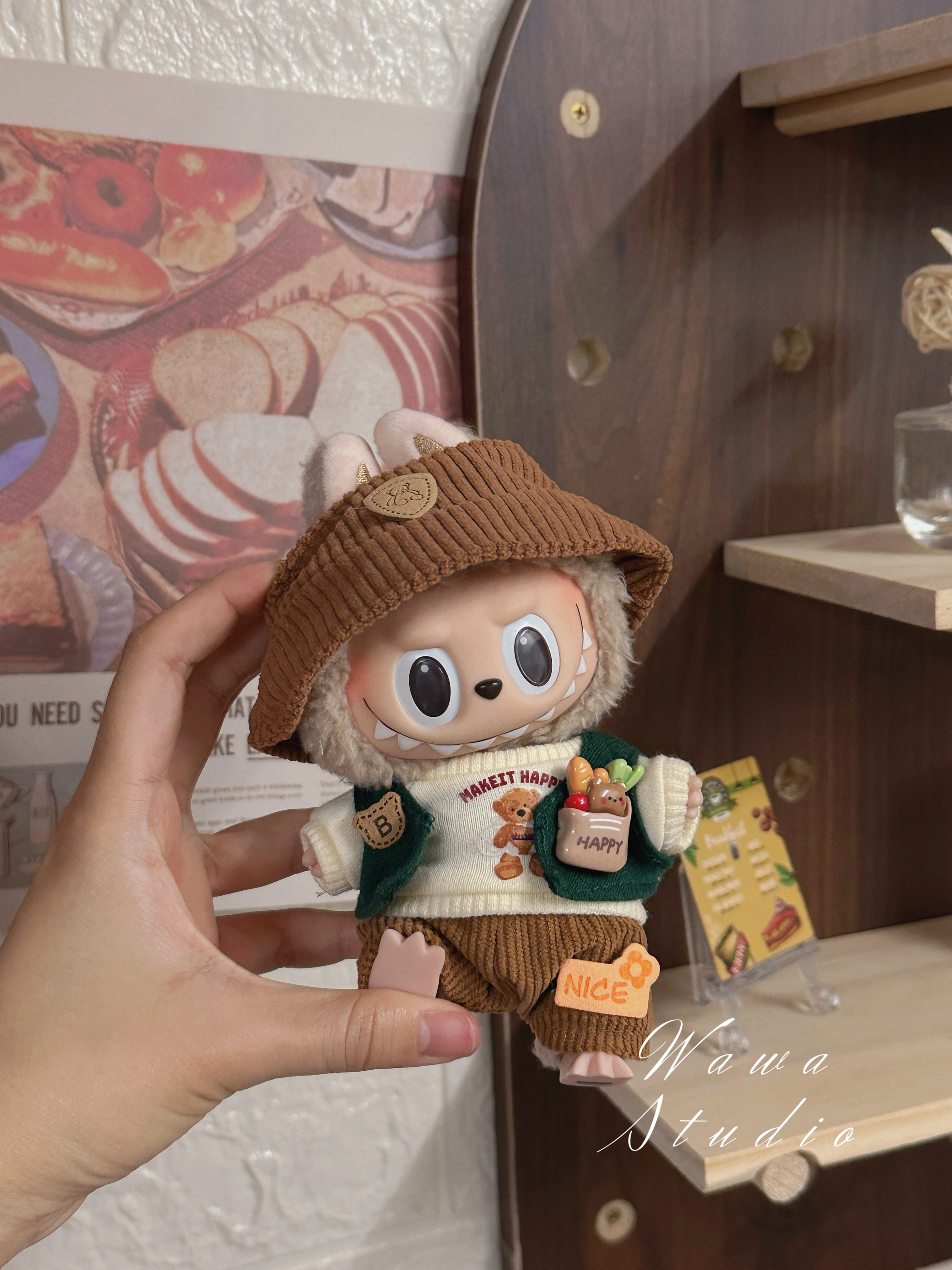 马卡龙10Labubu搪胶衣服盲盒15cm棉花娃娃毛绒拉布公仔自嘲熊娃衣