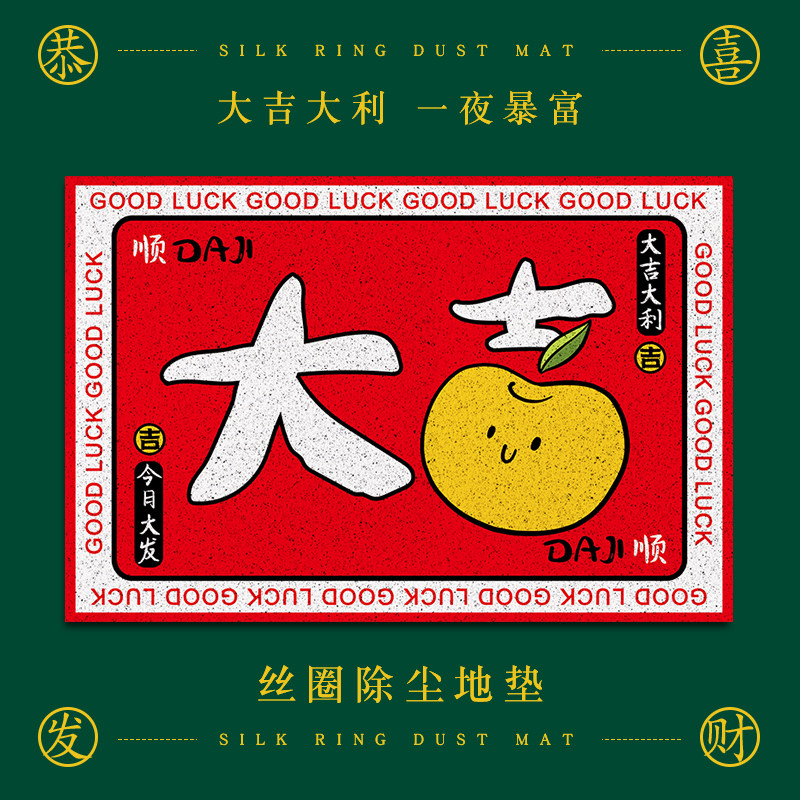 幻想先生新年入户地垫红色丝圈脚垫发财喜庆红地毯进门国潮定制