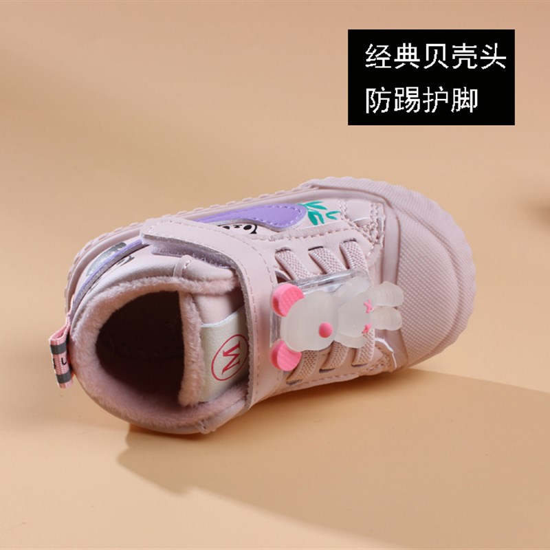 宝宝棉鞋冬季0-1-3岁女婴儿鞋子软底鞋小男童学步鞋加绒皮鞋亮灯2