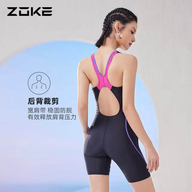【带胸垫可拆卸】ZOKE洲克新品成人女士游泳健身舒适连体五分泳衣