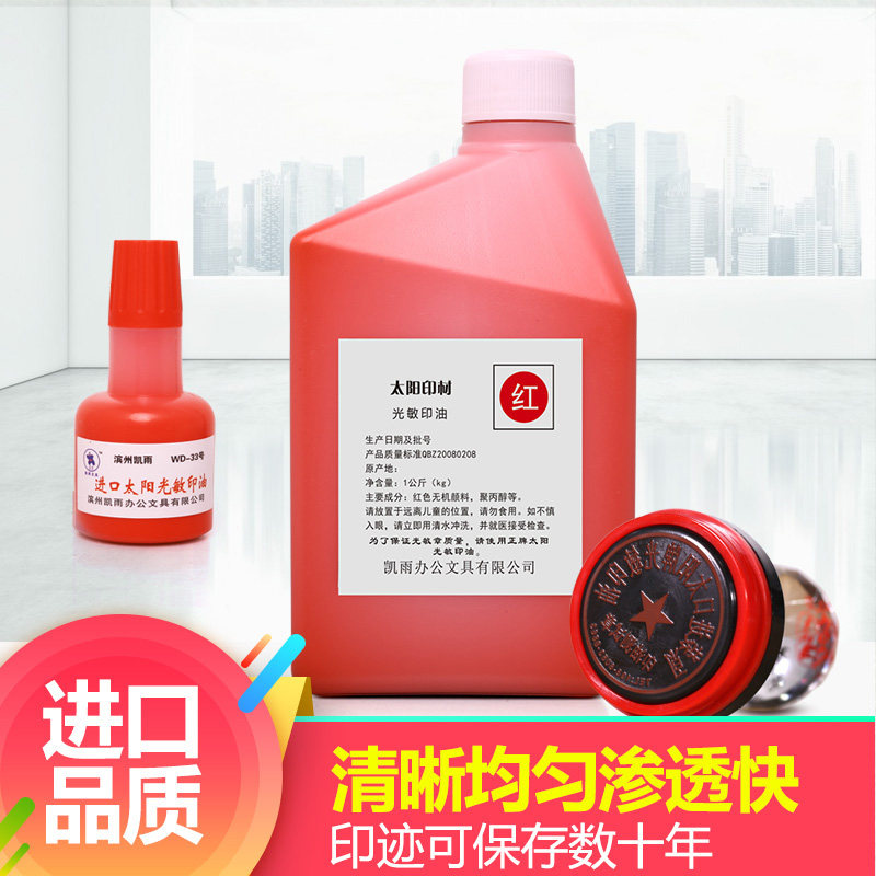 包邮进口1000ml太阳光敏印油印泥油 快干印油发票章公章专用印章油教师财务姓名印台油红色蓝色黑色大瓶墨水