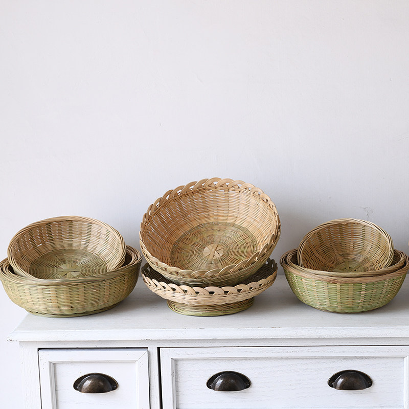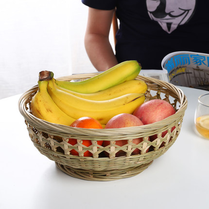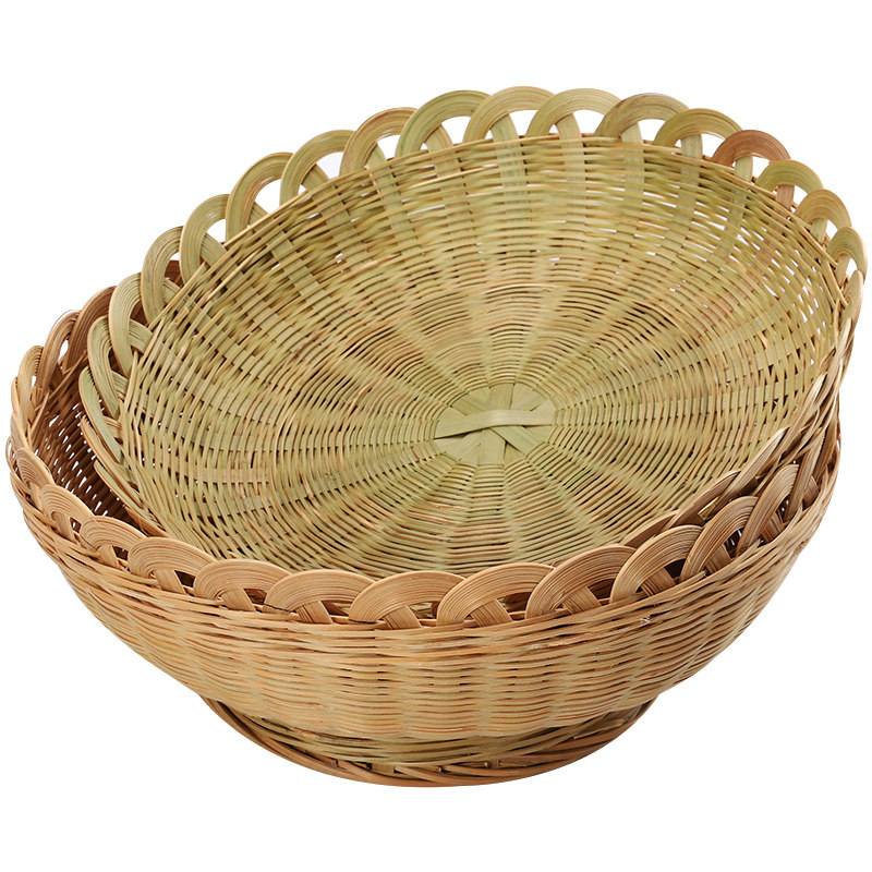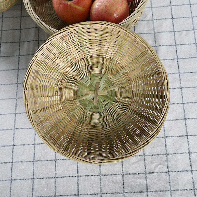 竹编果盘果篮家用馒头筐厨房客厅小竹筐鸡蛋篮圆形水果竹篮竹制品