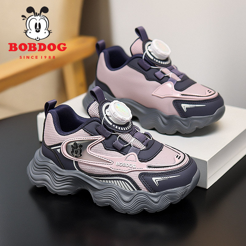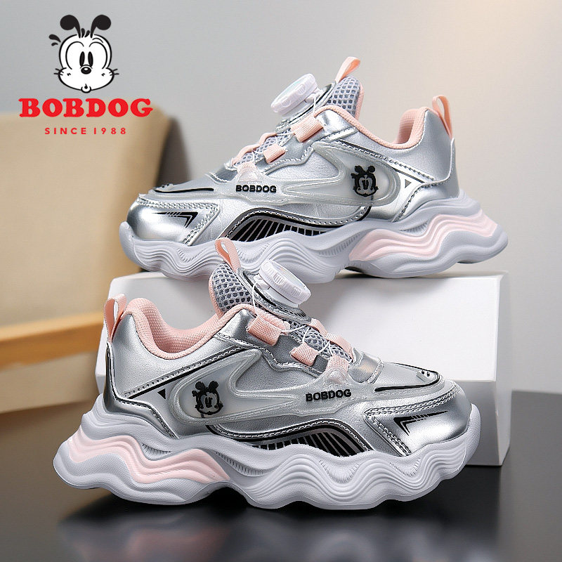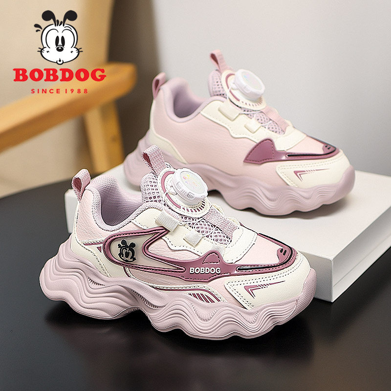 巴布豆童鞋女童运动鞋2025春秋新款皮面防水儿童鞋子女孩老爹鞋潮