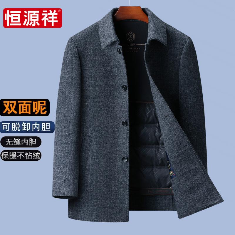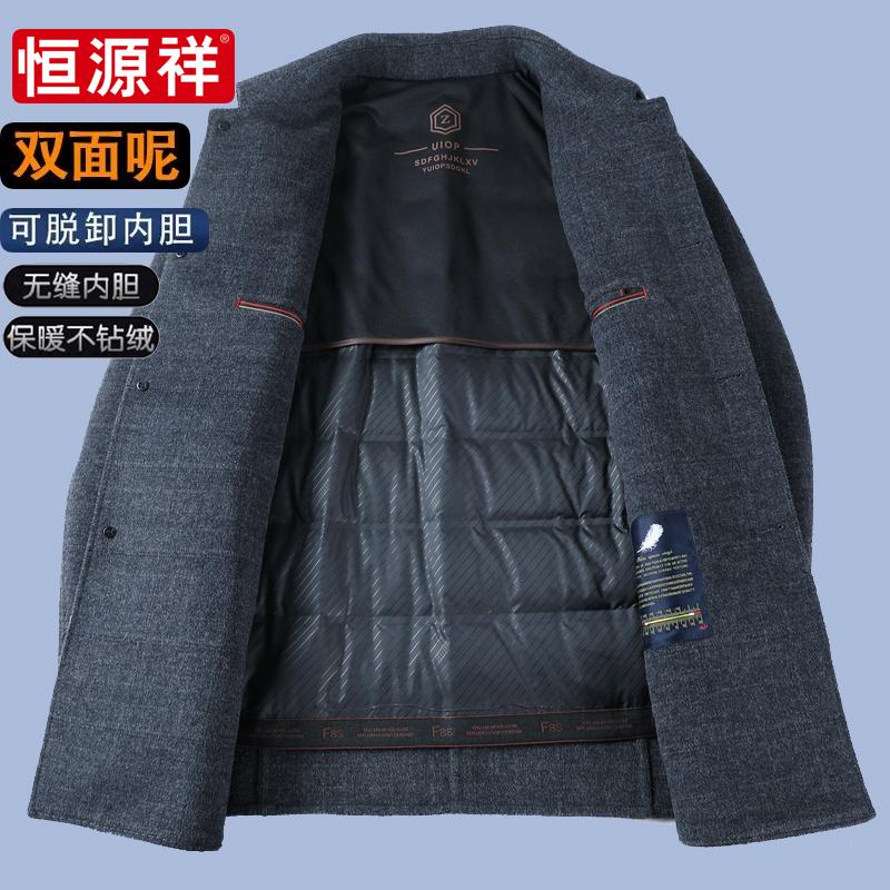 高端恒源祥双面呢羊毛大衣中年男士商务可拆羽绒内胆夹克羽绒外套